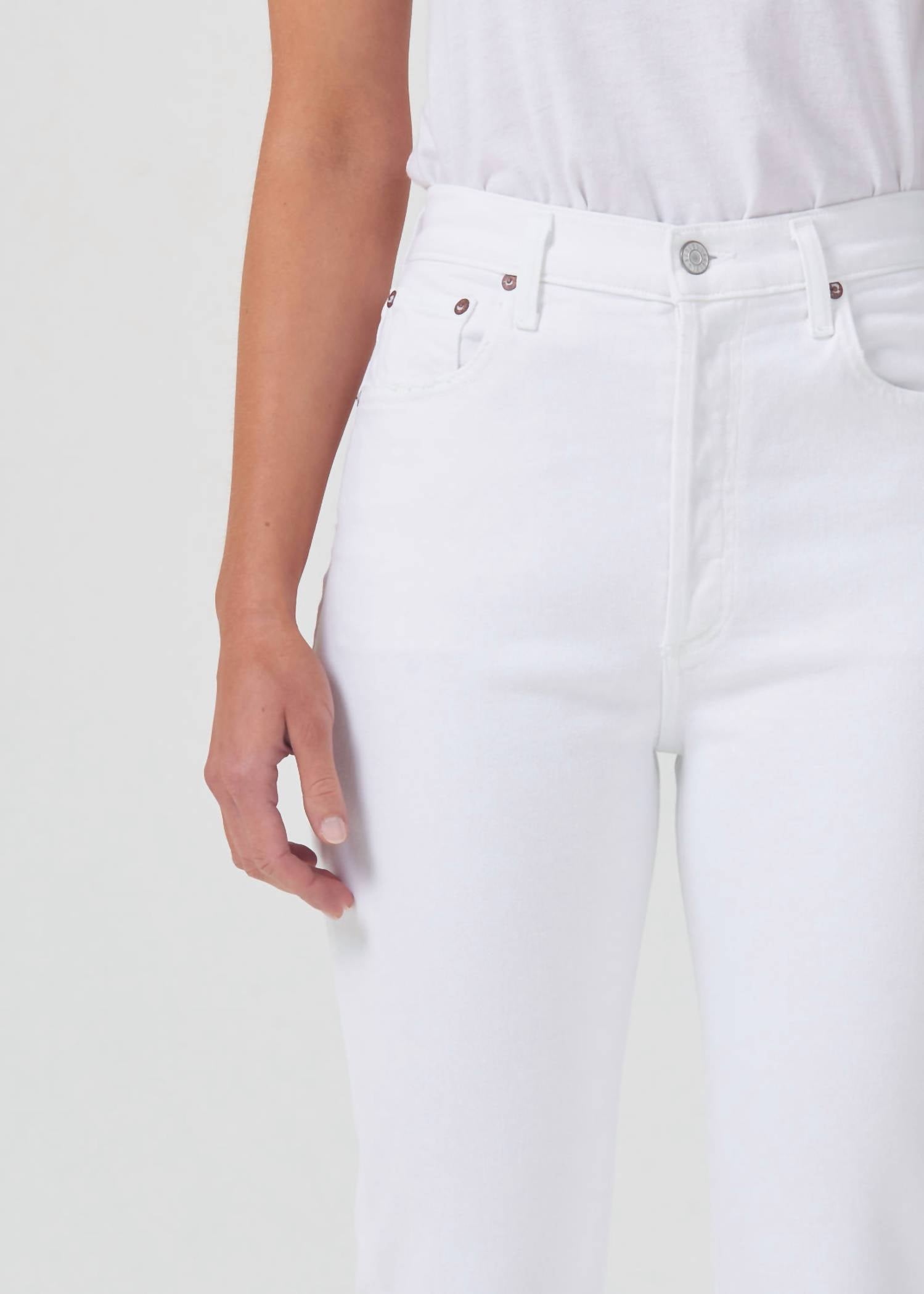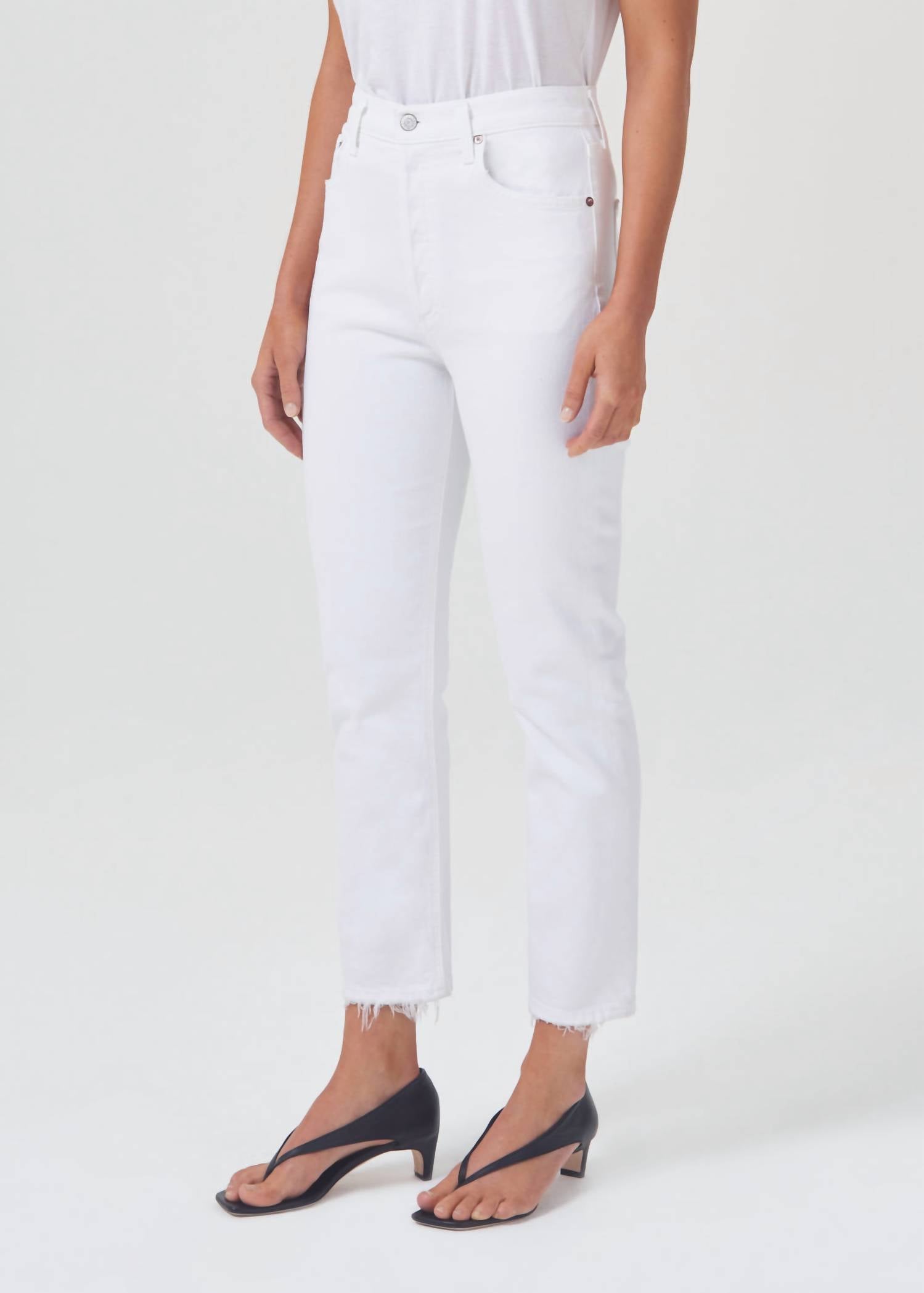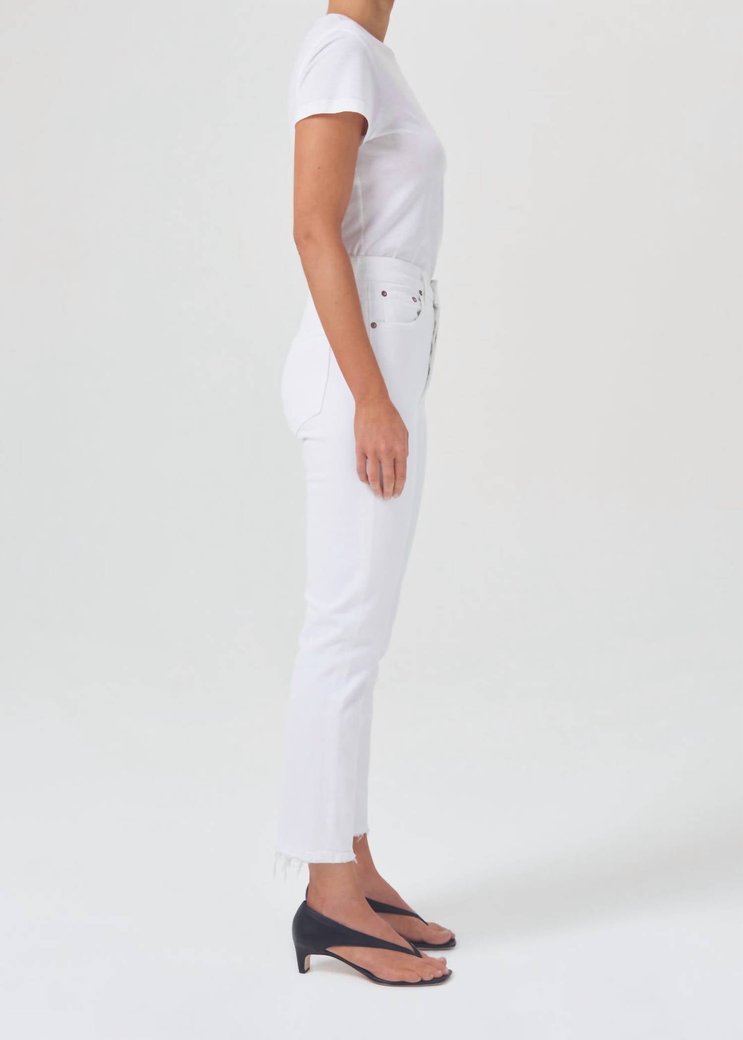 A cintura alta e a perna reta, que favorece o corpo, se ajustam perfeitamente ao corpo. Esta lavagem é feita de jeans elástico e tem caimento fiel ao corpo. Fechamento: Braguilha com zíper. Cós: 29 cm. Entrepernas: 66 cm. Abertura da perna: 35 cm. A modelo tem 1,78 m e veste tamanho 27. Lavar à máquina com água fria.