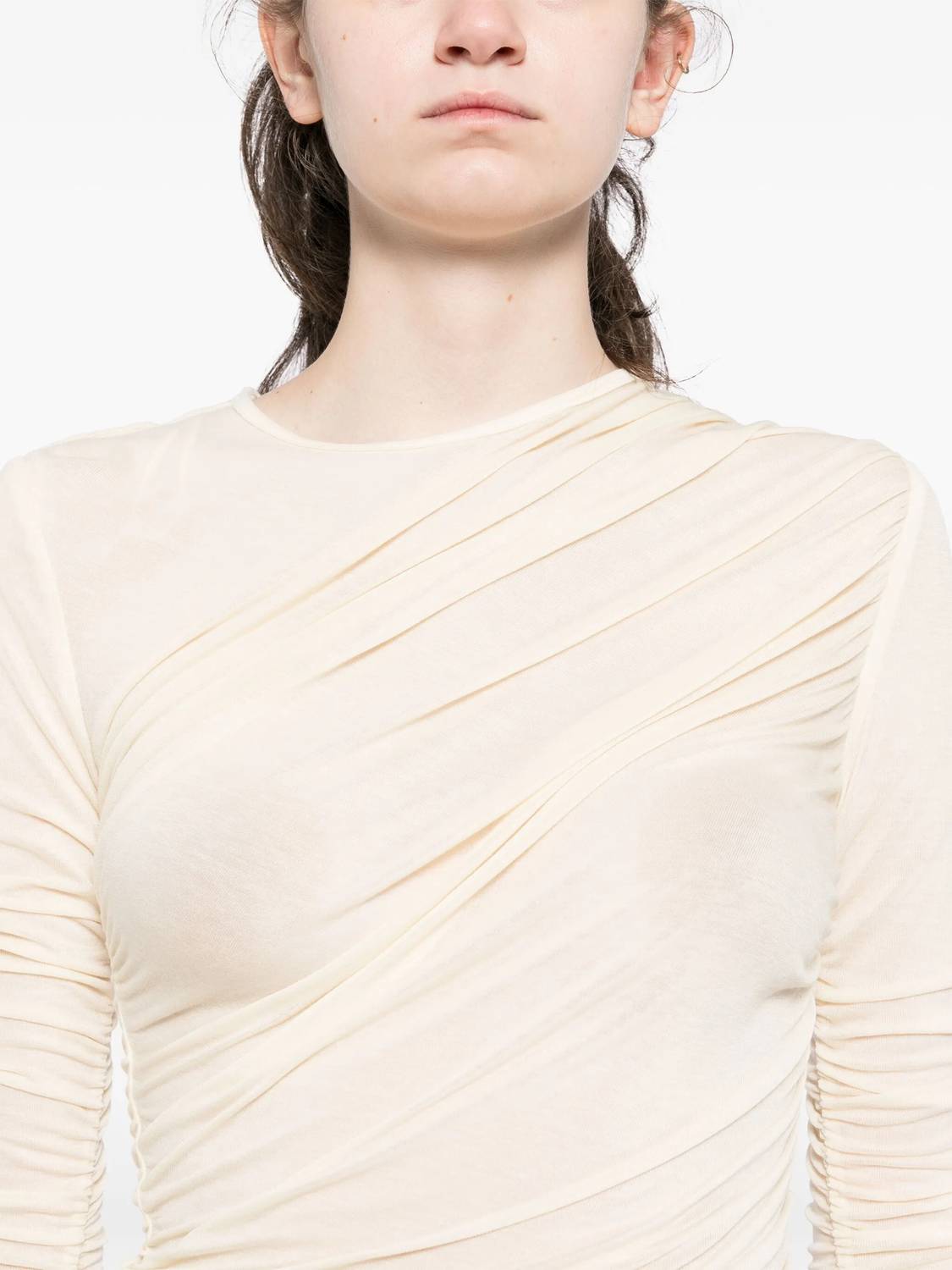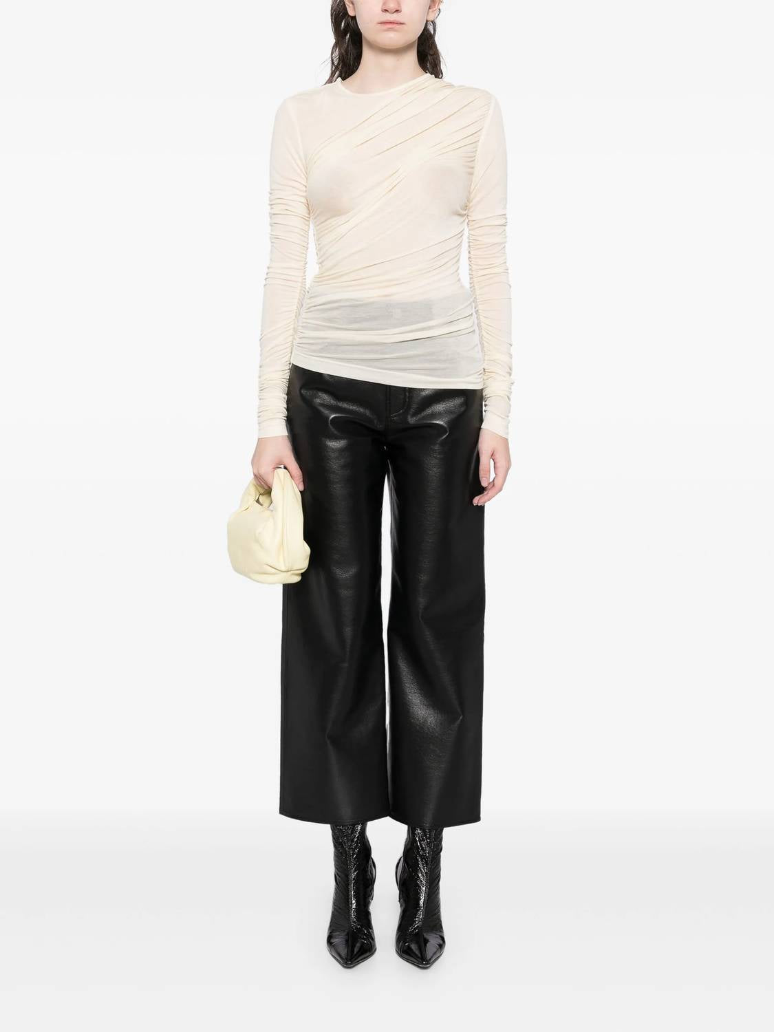 Apresentamos a camiseta Tania Twist da AGOLDE, uma blusa estilosa de manga comprida em um elegante tom de aveia, perfeita para guarda-roupas minimalistas. Fabricada nos EUA, esta peça combina tecido ultramacio 94% Tencel e 6% Spandex para um ajuste confortável e possui um fecho de puxar elegante. Com 49 cm de comprimento, ela foi projetada para oferecer uma aparência levemente transparente e uma sensação notavelmente leve. Para facilitar a manutenção, lave na máquina com água fria, do avesso, e seque em temperatura baixa.