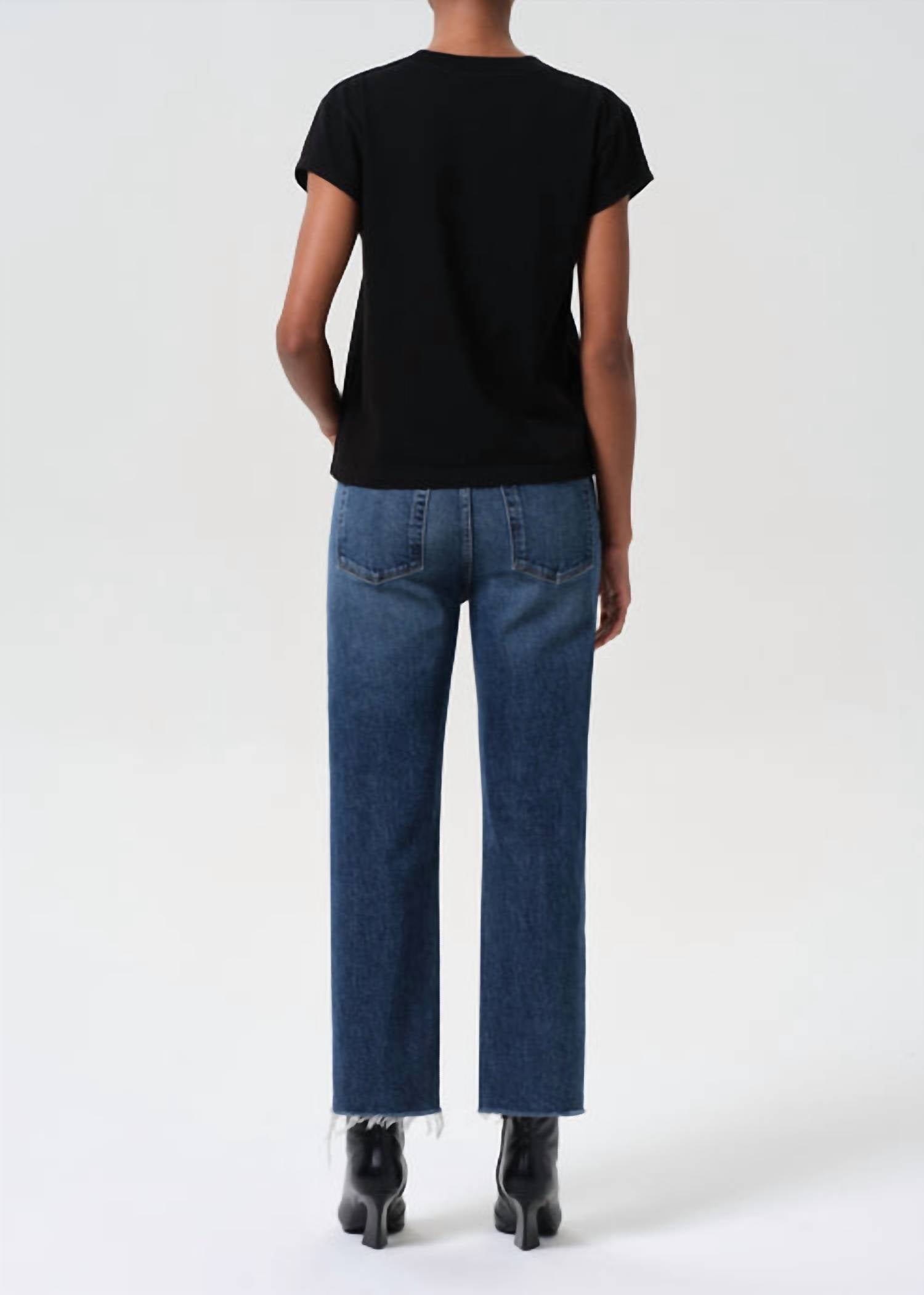 This classic straight leg jean has a perfect fit and goes with just about everything. Introducing the Valen Straight Jeans by AGOLDE, a chic blend of classic design and modern comfort in the understated Solace hue. These women's straight leg jeans feature a mid-rise with an 11" rise, an ankle-grazing 28.5" inseam, and a 15" leg opening. Crafted from a cotton blend with 99% regenerative cotton and 1% elastane, they promise all-day comfort and flexibility. Made in Turkey, these jeans come with a practical zip closure and handy pockets, while care is made simple with machine wash cold and tumble dry low instructions. Model is 5'10" and wears a size 27.