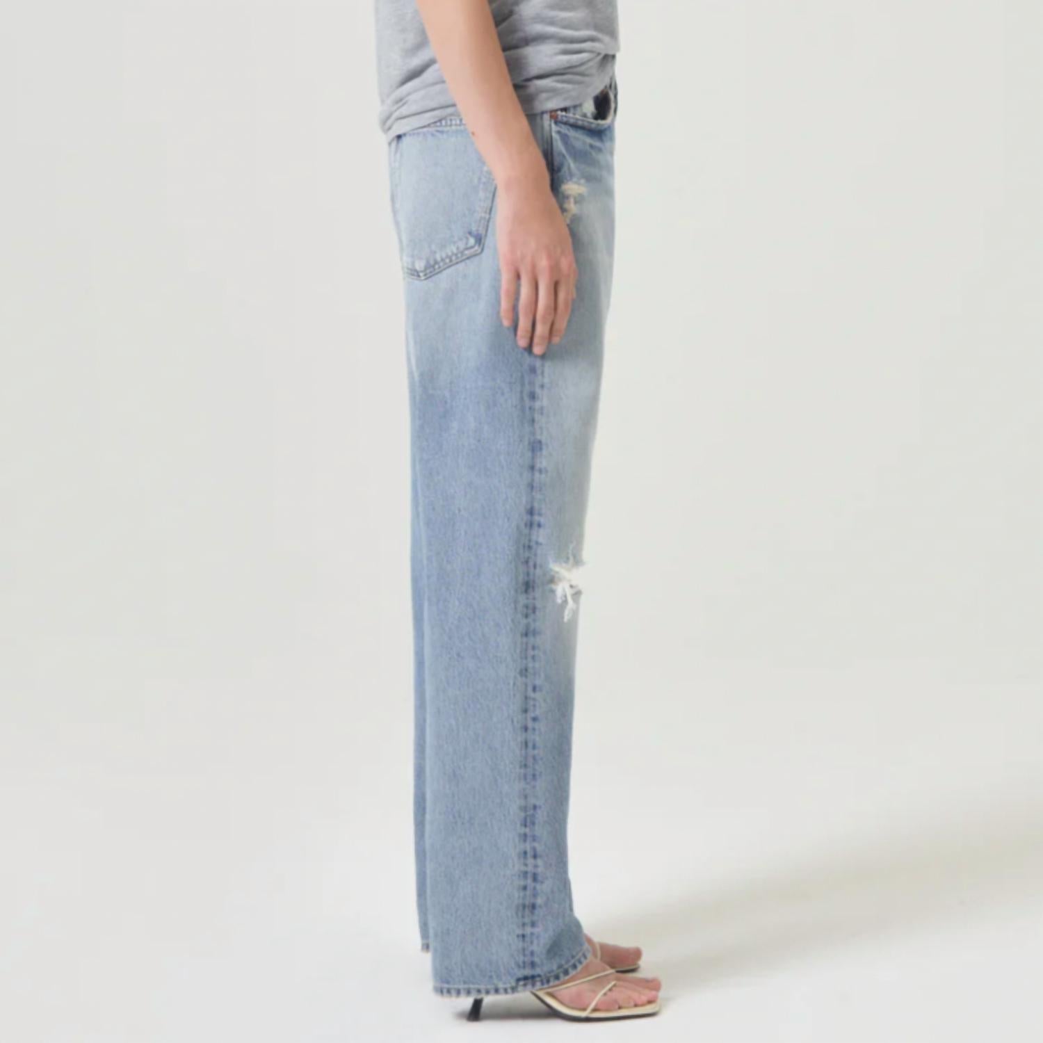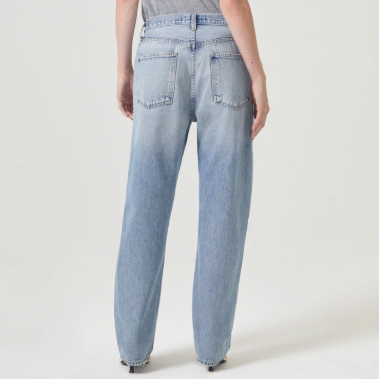 Este jeans clássico de perna reta tem um ajuste perfeito e combina com quase tudo. Canalizando a vibe quintessencial dos anos 90, a Calça Jeans Feminina 90's da AGOLDE é uma adição atemporal a qualquer guarda-roupa. Esta calça jeans 100% algodão tem cintura média, caimento solto nos quadris e perna reta e larga. Com fecho de botão e fabricada nos EUA, apresenta uma lavagem vintage índigo claro com efeito desgastado intencional para um look jeans autêntico. O cuidado é fácil com as instruções de lavagem à máquina e secagem em tambor, garantindo que esta calça fique ainda mais macia a cada uso. A costura interna tem 71 cm e a cintura tem 33 cm.