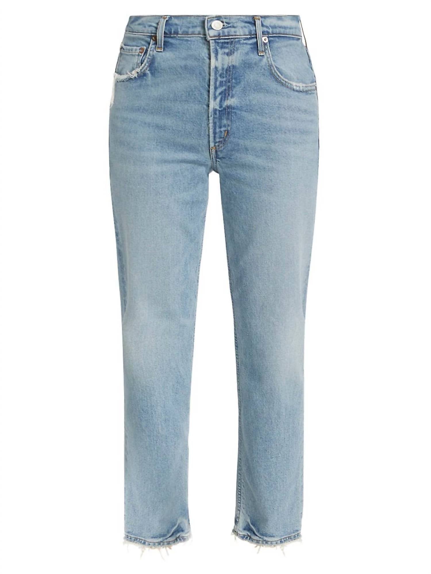 A Calça Jeans Kye de Cintura Média, Stretch e Reta, da AGOLDE, na cor Foreseen, oferece uma versão moderna do jeans comfort fit. Confeccionada em uma mistura de 59% algodão, 40% viscose ecovero e 1% elastano, esta calça jeans importada apresenta um design de cintura média e perna reta, com passantes para cinto e leve franzido para um visual descontraído. O fecho de botão e o zíper realçam este modelo de cinco bolsos, tornando-o perfeito para um jantar ou passeio casual. Com uma cintura de aproximadamente 26 cm, uma costura interna de 68 cm e uma abertura de perna de 38 cm, o cuidado é simples: basta lavar na máquina. A modelo tem 1,78 m e veste tamanho 4 (EUA).
