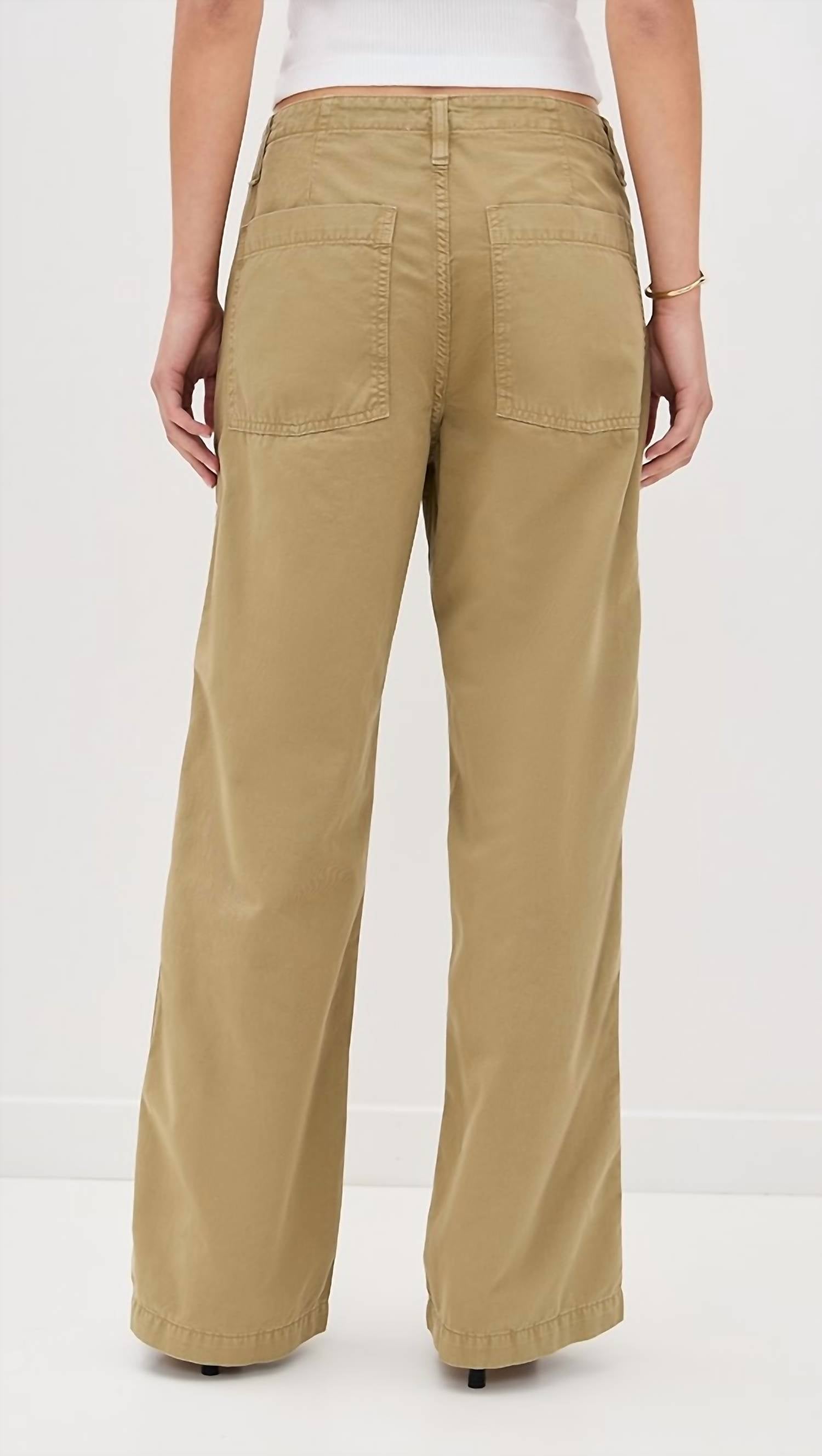 Introducing the Yuna Utility Pant by AGOLDE, perfect for women who embrace streetwear style. This solid, crocodile-colored utility pant features a low-rise, relaxed fit with a wide leg and convenient pockets. Made from 100% cotton, it showcases a button closure and originates from Turkey. Care is simple with machine wash instructions.