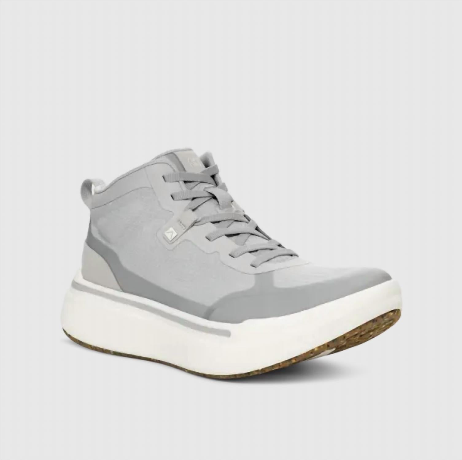 Introducing the Women's Sequence Mid Shoes by AHNU in sophisticated grey, designed for the active woman seeking style and comfort. These sneakers feature a monofilament mesh upper for durability and on-foot comfort, complemented by a padded tongue and microfiber lace locks for enhanced support. The supercritical PEBA foam ensures lively, smooth steps while the forked carbon-fiber plate adds a spring to every step. Crafted with a durable gum rubber outsole made from recycled content, these shoes promise enhanced traction, perfect for athleisure trends and fitness workouts.
