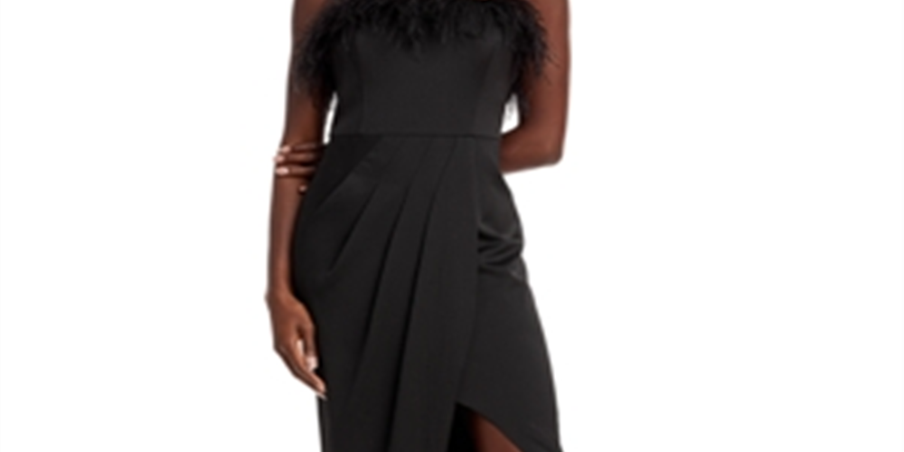 Vestido feminino sem alças com acabamento em penas, preto, tamanho 8, Aidan by Aidan Mattox