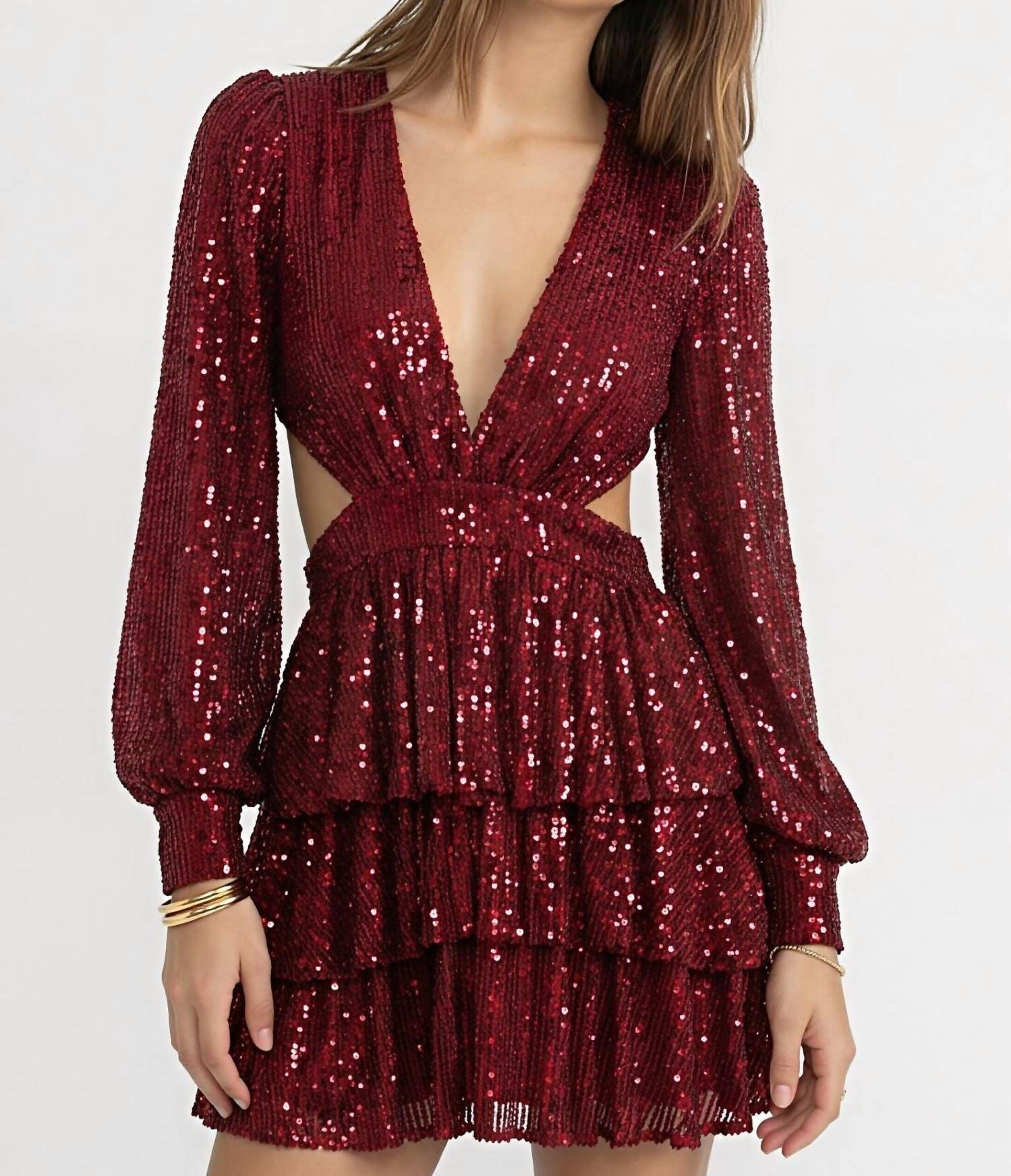 The Akalia Freja Flare Mini Dress is a stunning choice for a cocktail party with its striking sequined detailing and maximalist trend appeal. Its sophisticated V-neckline and long sleeves enhance the elegant fit and flare silhouette, perfect for making a memorable entrance. Crafted from a viscose blend consisting of 63% viscose, 33% nylon, and 4% elastane, this dress is designed for comfort and style. Closure is secured with a tie, and it is made in Europe with care instructions to cold hand wash.