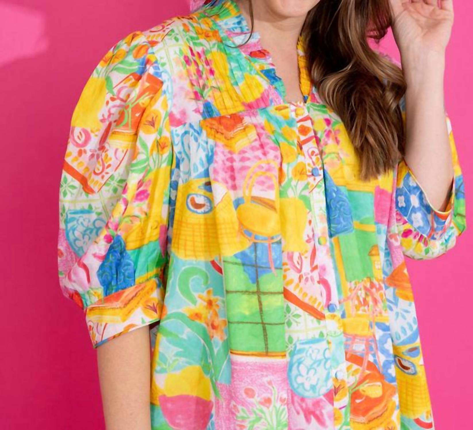 Meet the Abigail Dress by Alden Adair, an essential piece for your summer wardrobe. This mini dress features elbow-length puff sleeves, crafted from 100% cotton voile, ensuring comfort and breathability. Adorned in an artistic Van Gogh print, it showcases a pleated V-neckline and a button front body, embodying a maximalist trend perfect for vacation or Easter celebrations. Care is made easy with machine wash cold and tumble dry low instructions.