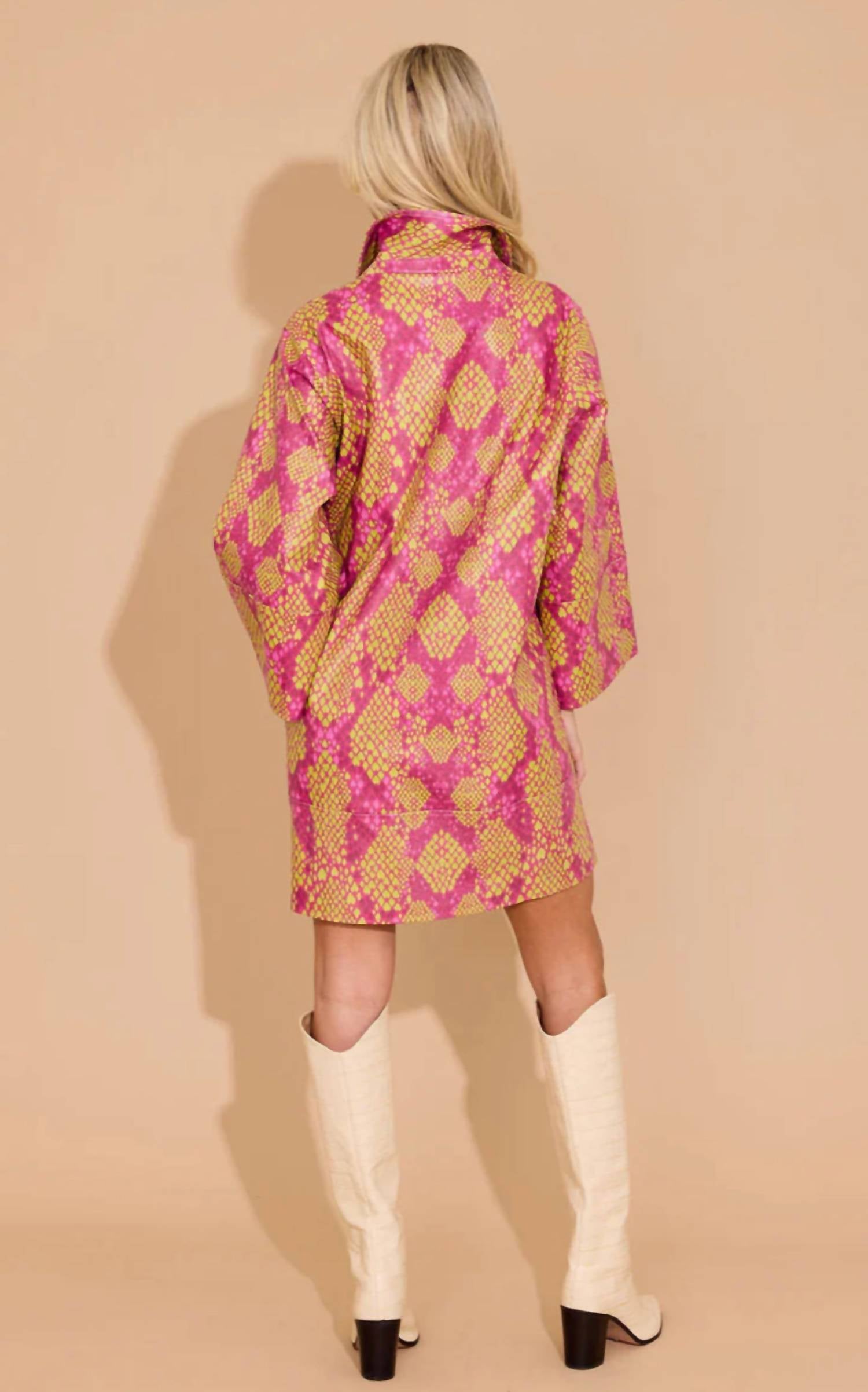 Experience the understated elegance of the Alden Adair Dakota Dress in a striking serpent-inspired design. This women’s mini dress, featuring long sleeves and a flattering v-neck neckline, is crafted from premium polyester and showcases a chic shift silhouette. With an animal pattern and zip closure, this piece is designed for vacation-ready style while exuding sophistication. Care instructions include machine wash and tumble dry to maintain its luxurious appeal.