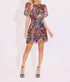 Introducing the Hadley Dress by Alden Adair in the captivating Royalty hue, designed for the modern woman's wardrobe. This elegant mini dress features short sleeves and is crafted from premium polyester, offering both a tailored silhouette and a graphic pattern that enhances its sophisticated aesthetic. With a chic crewneck and A-line silhouette, this piece is perfect for evening events. Closure: Tie closure. Care: Machine wash. Model is wearing a size XS (5’6”, 32” bust, 24” waist).