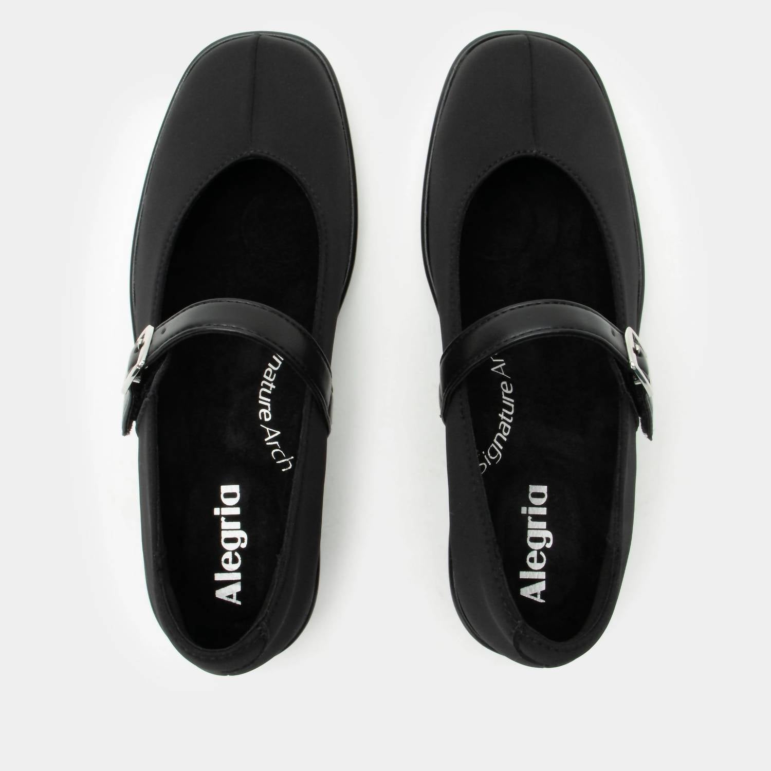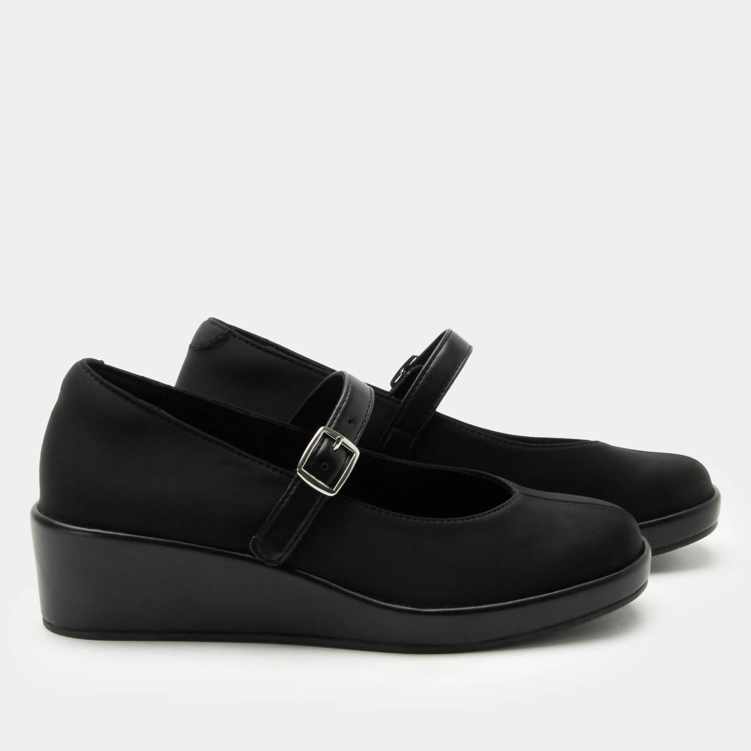 Alegria's Haylo Mary Jane in black effortlessly blends classic style with modern comfort, making it perfect for any occasion. Featuring a chic wedge heel with a height of 1 3/4", this design offers versatility with leather or Dream Fit® stretch uppers. An adjustable hook and loop strap ensures a personalized fit, while the removable dual-density Signature Arch™ footbed provides exceptional support. With a slip-resistant polyurethane outsole and a stain-resistant upper, it's a reliable choice for everyday wear.