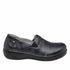These slip-on shoes are comfortable and easy to wear. They feature closed toes, stain-resistant leather uppers and lining, and double elastic side panels for a snug fit. The removable Alegria footbeds add extra cushioning, while the slip-resistant rubber sole with a 1¼-inch heel keeps you steady all day.