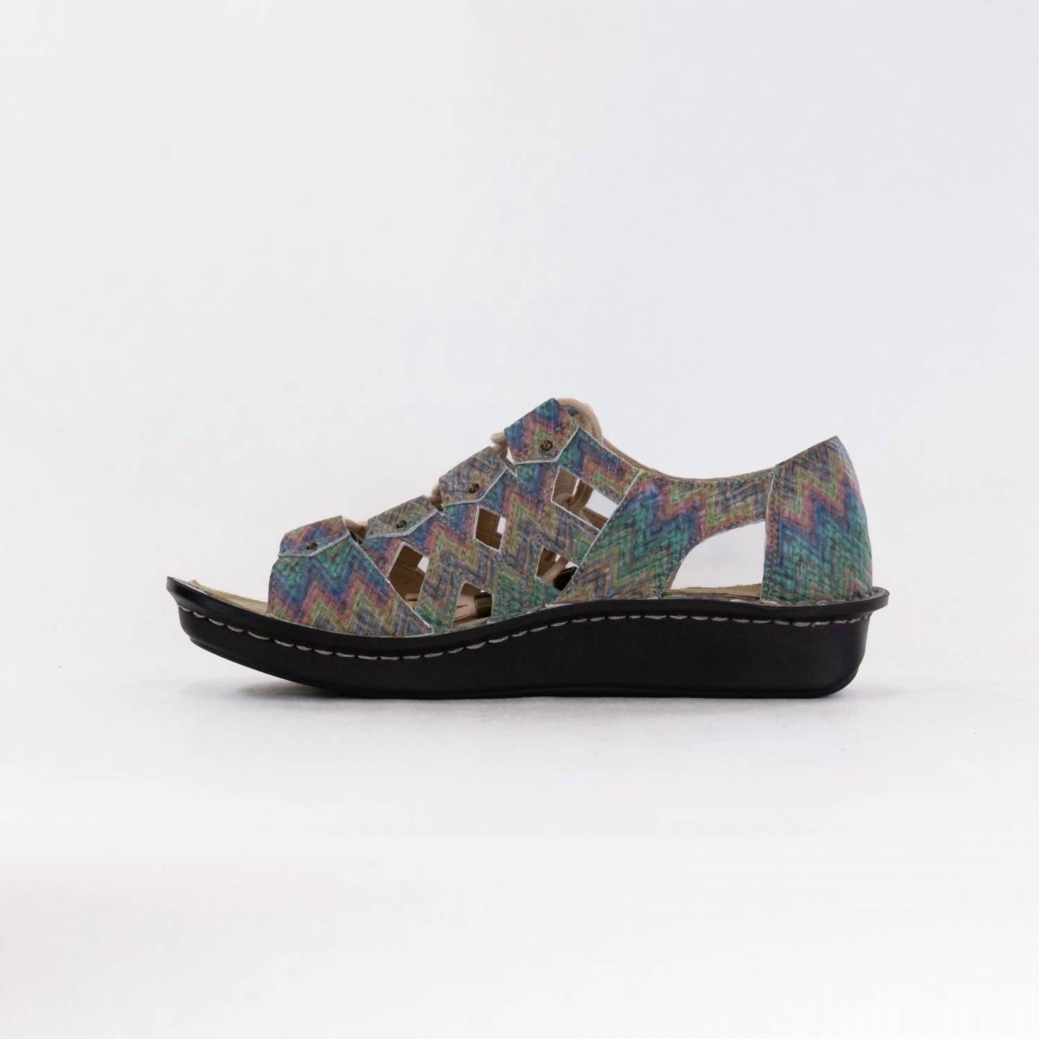 Vestidos esvoaçantes, calças cropped e até macacões... esta sandália combina com todos eles! Entre em sintonia com o conforto e o estilo com a Sandália Feminina Valerie da Alegria, com um cabedal de couro sedutor e divertido na cativante cor Woven Wonder. Projetada com fecho ajustável em velcro adornado com uma fivela decorativa, esta sandália oferece um ajuste perfeito. Seu design ergonômico inclui uma palmilha removível patenteada e um solado mini-rocker de 2,5 cm para aprimorar sua experiência ao caminhar. A sandália Valerie é aprovada pela APMA, garantindo suporte e conforto para longas horas em pé.