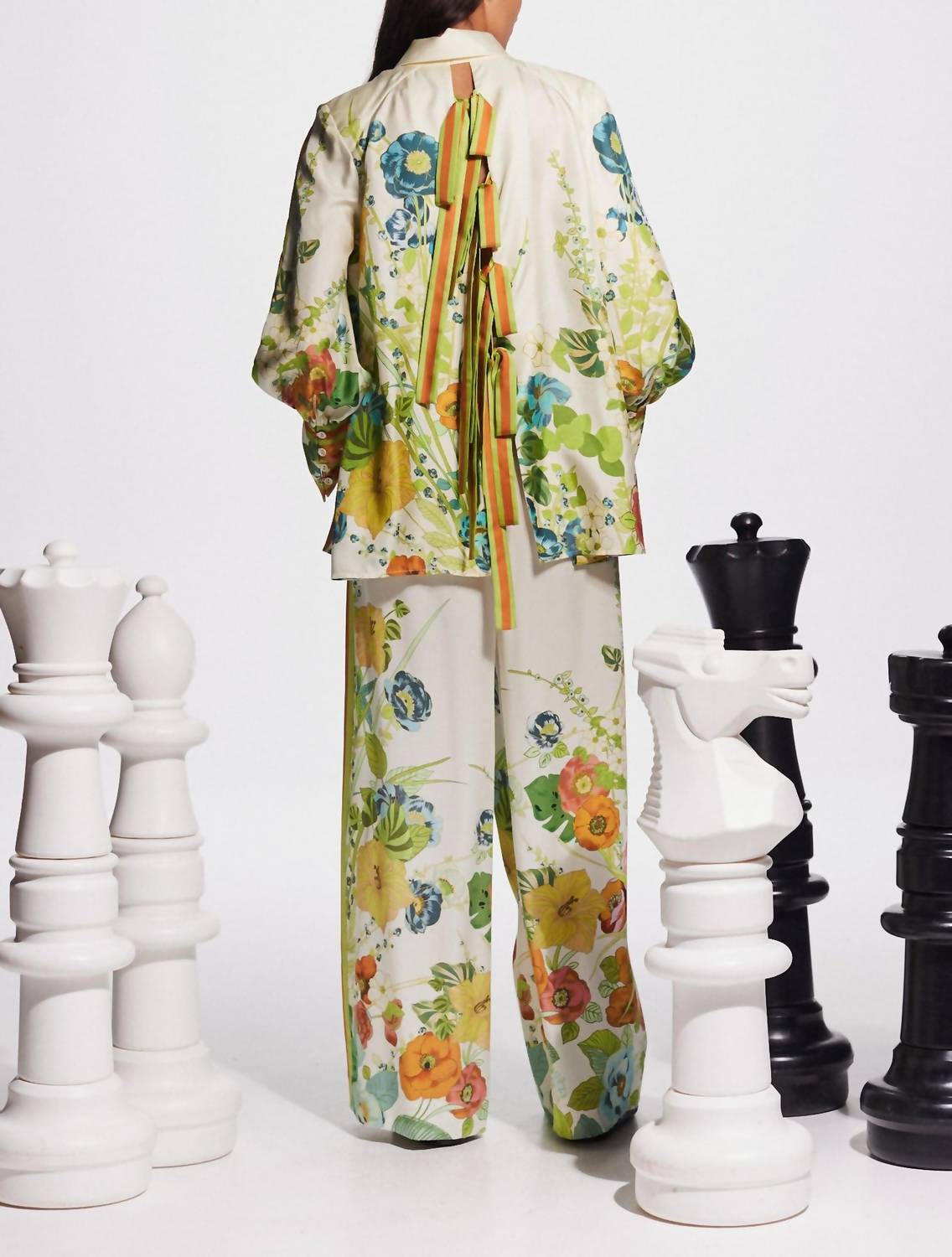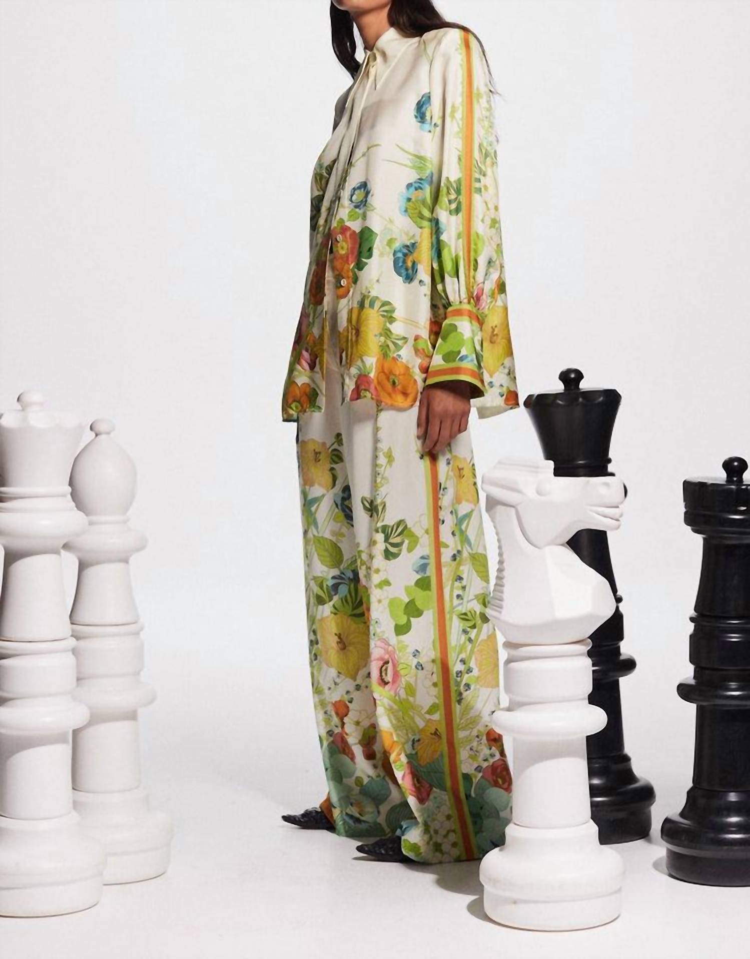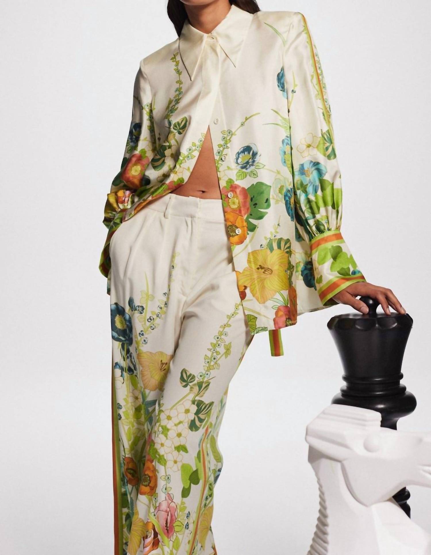 Introducing the Constance Long Sleeve Shirt by ALEMAIS, a sophisticated choice in elegant cream. Crafted from 100% Silk Twill, this tailored shirt features a concealed placket with self-covered button closure and fixed shoulder pads, exuding refined style. The elongated point collar, split at the center back with ties, and split cuffs add distinctive elements to this piece. For care, please ensure dry cleaning only.