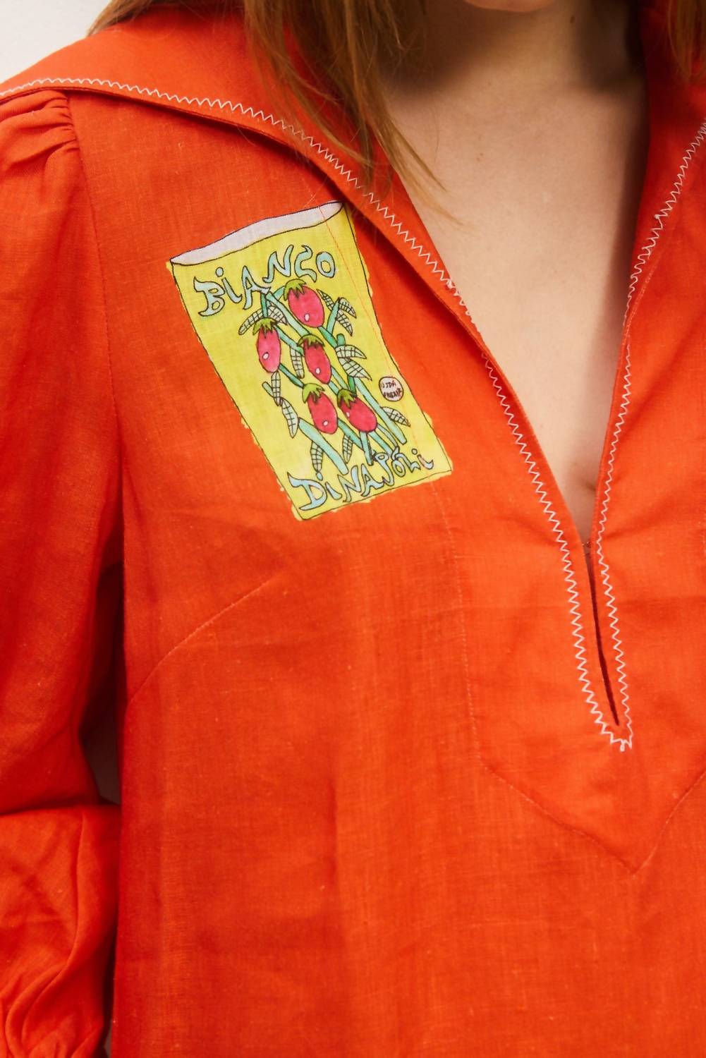 The Contessa Mini Dress by ALEMAIS in a charming tomato hue is perfect for holiday events and spring outings alike. This relaxed mini dress in European Linen offers a look that is both breezy and sophisticated, with long sleeves and a wide collar adding to its vintage charm. Style meets practicality with contrast stitch detail, inseam pockets, and a versatile pull-on closure. For the best care, we recommend a cold hand wash to maintain the dress's elegant design and reduce your environmental impact.