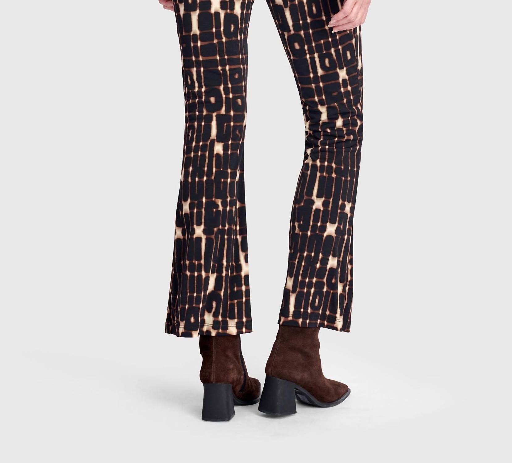This sleek ankle-length pant features a flattering flared silhouette, cut slim through the thigh and subtly opening at the hem for a polished finish. Crafted from stretchy matte jersey, it smooths the figure while allowing comfortable movement throughout the day. Designed with an elastic waistband for easy pull-on wear, it pairs effortlessly with tunics, knits, or coordinating separates. Made from 95% polyester and 5% elastane for a flexible, streamlined fit.