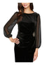 Alex Evenings Blusa de noite feminina de manga comprida com decote em joia, preta, tamanho pequeno e pequeno