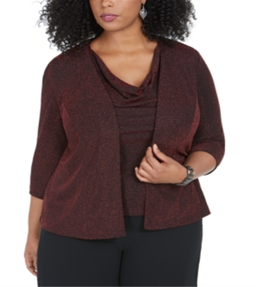 Alex Evenings Blusa feminina de manga comprida com decote em joia, vermelha, tamanho 1X