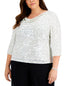 O toque festivo que você precisa para elevar o look de festa; este top plus size Alex Evenings brilha com lantejoulas por toda a peça. | As lantejoulas podem soltar pelos durante o uso | Importado | Gola alta | Mangas 3/4 | Enfeite de lantejoulas por toda a peça | 1X=14W-16W