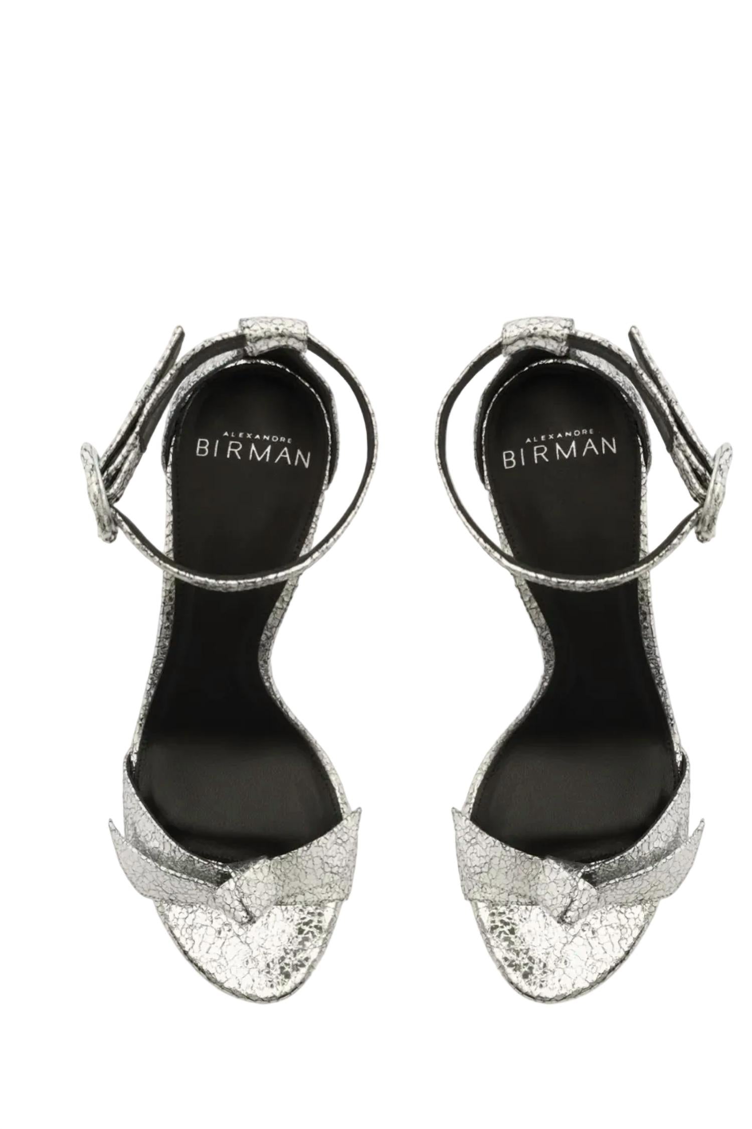 Flowy dresses, cropped pants, and even jumpsuits... this sandal works with them all! Step into sophistication with Alexandre Birman's Clarita Buckle 85 Sandals in a striking Argento hue. These sandals boast an open toe and an adjustable ankle strap buckle, perfectly combining comfort and style. Made from premium leather and leather sole, they feature a sculptural heel standing at a graceful 2.4 inches. Ideal for cocktail parties and other elegant gatherings, this minimalist design is a must-have for spring.