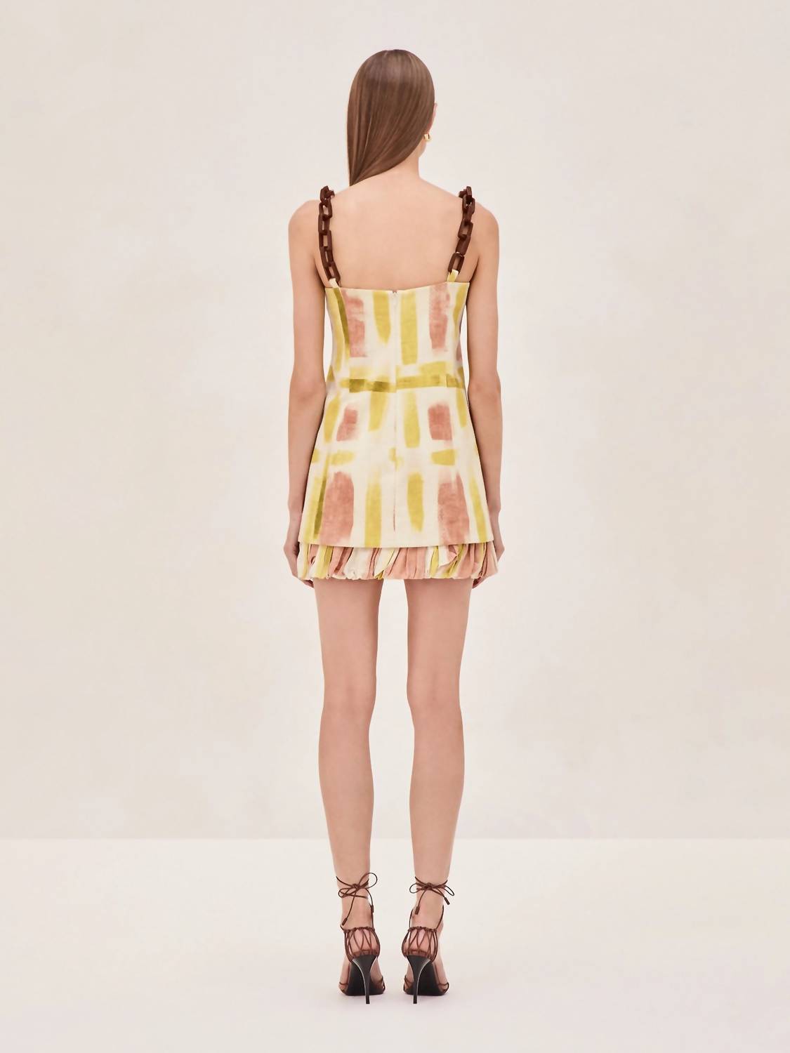Embrace joyful summer vibes with the Beleza Short Dress by ALEXIS, an A-line mini crafted for maximalist vacation wear. This beautiful yellow piece features spaghetti straps and a flattering squareneck design. With a convenient zip closure, the dress is patterned to capture attention and ensure your outfit stands out. Care: Dry clean only.