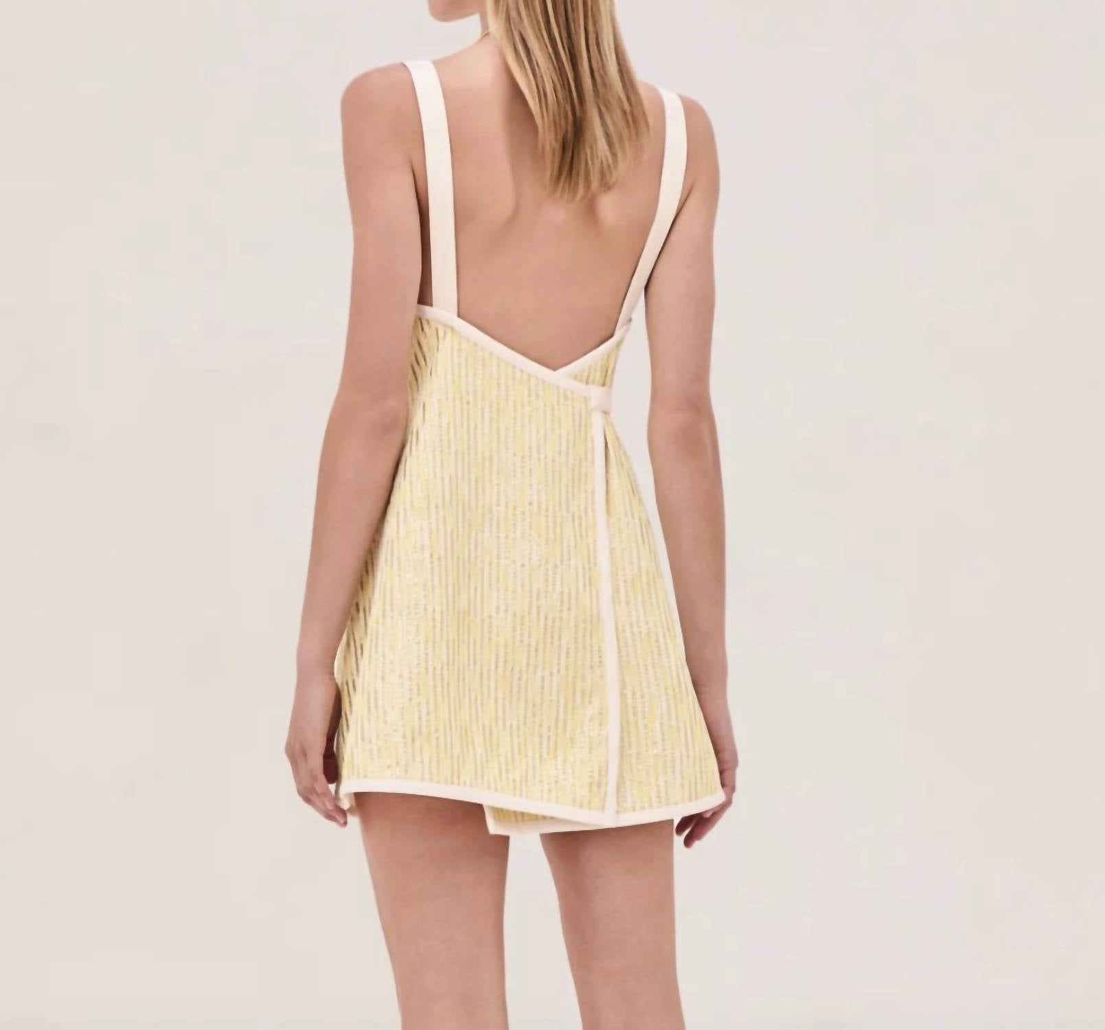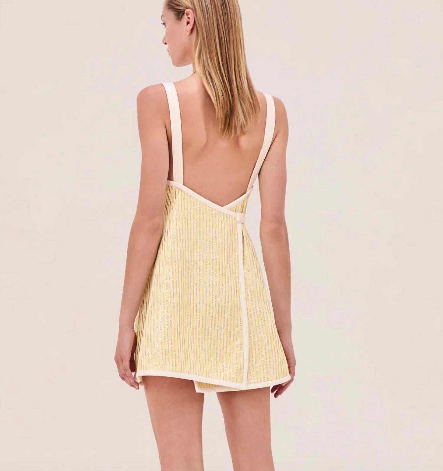 The perfect mini dress for those warmer months. The Luccia Dress is a jacquard wrap mini dress featuring adjustable belt straps, a tie belt at the waist, and a subtle sheen.