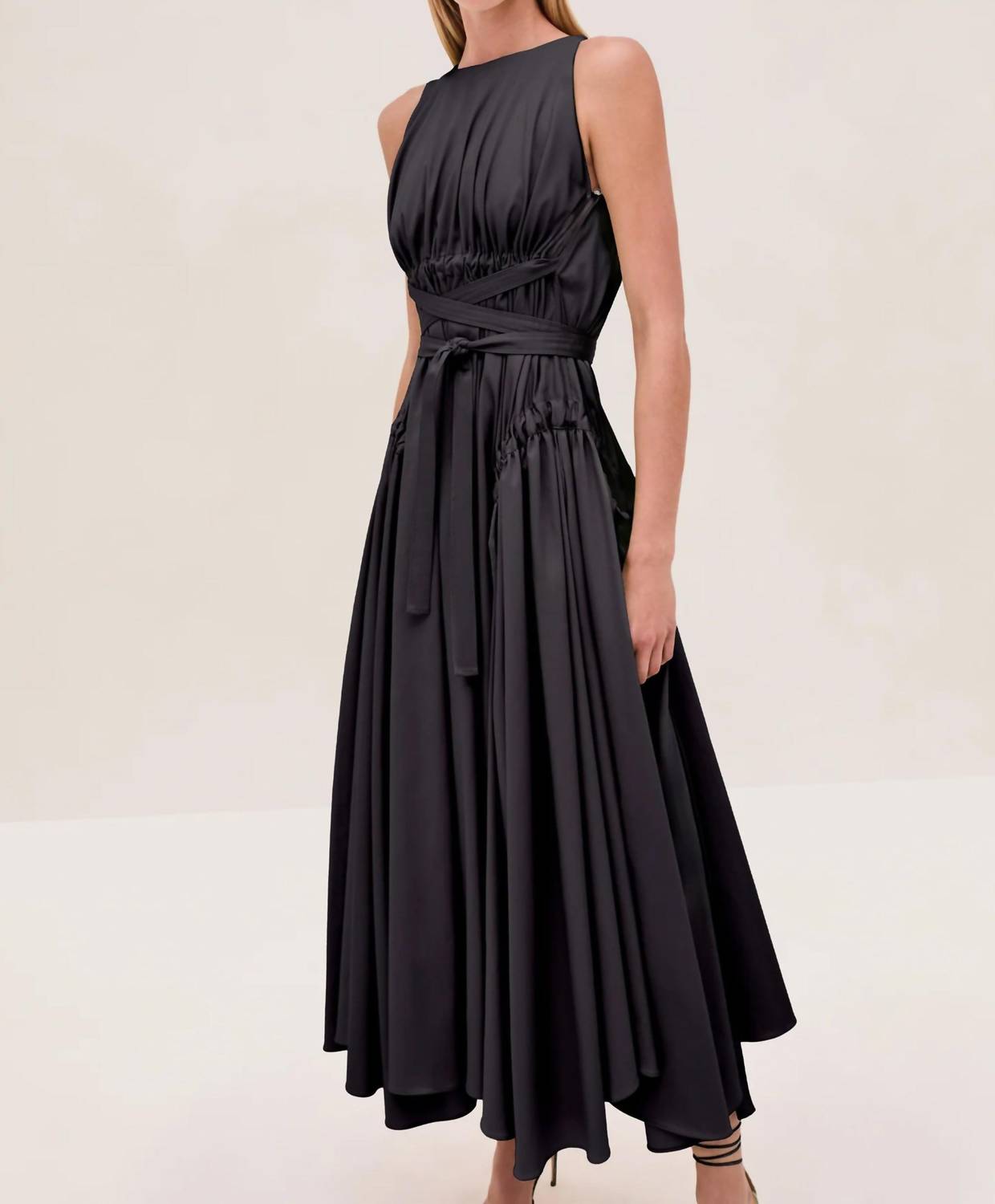 Introducing the elegant Versaille Maxi Dress by Alexis, an A-line silhouette designed to elevate any dinner party occasion. This sleeveless dress features open sides and a button closure, accented by a drawstring waist for a flattering fit. Crafted from a cotton blend of 68% Cotton, 29% Polyester, and 3% Elastane, it boasts a maxi puffed skirt with cinched details for added flair. Care for this striking piece with dry clean only instructions to maintain its maximalist charm.