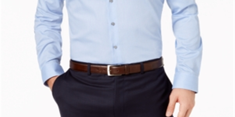 Camisa social texturizada Alfani masculina, ajuste atlético, performance, sarja elástica, azul, tamanho G-16-16,5x32-33
