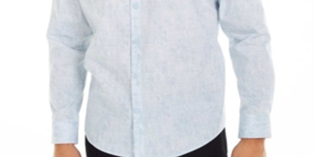 Camisa xadrez abstrata Alfani masculina, corte clássico, azul desbotado, tamanho 3XL