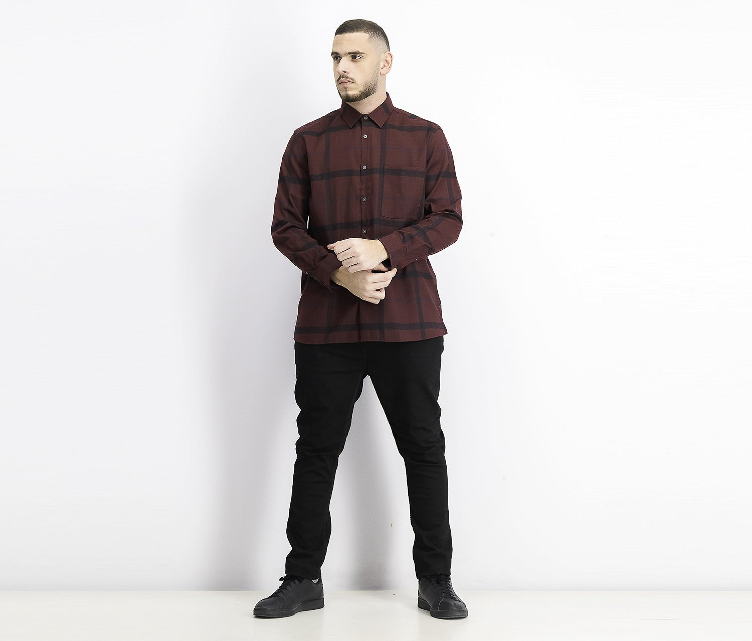 Ajuste clássico | Gola pontuda | Punhos com botões | Padrão xadrez | Poliéster/elastano | Lavável à máquina | Importado