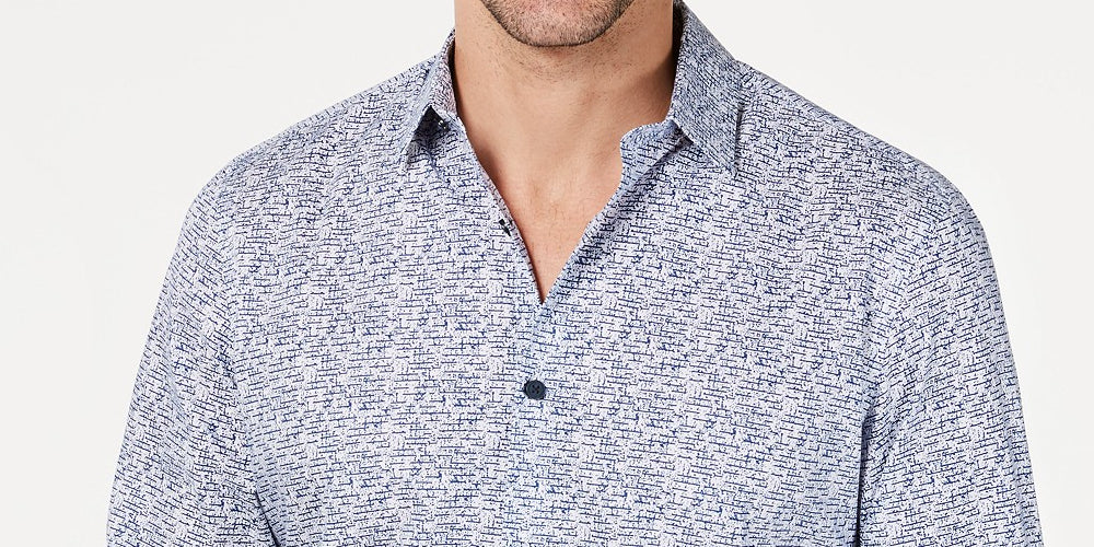 A altura aproximada do modelo é 1,85 m e ele veste tamanho médio | Gola pontuda | Estampa geométrica | Todo em algodão | Lavável à máquina