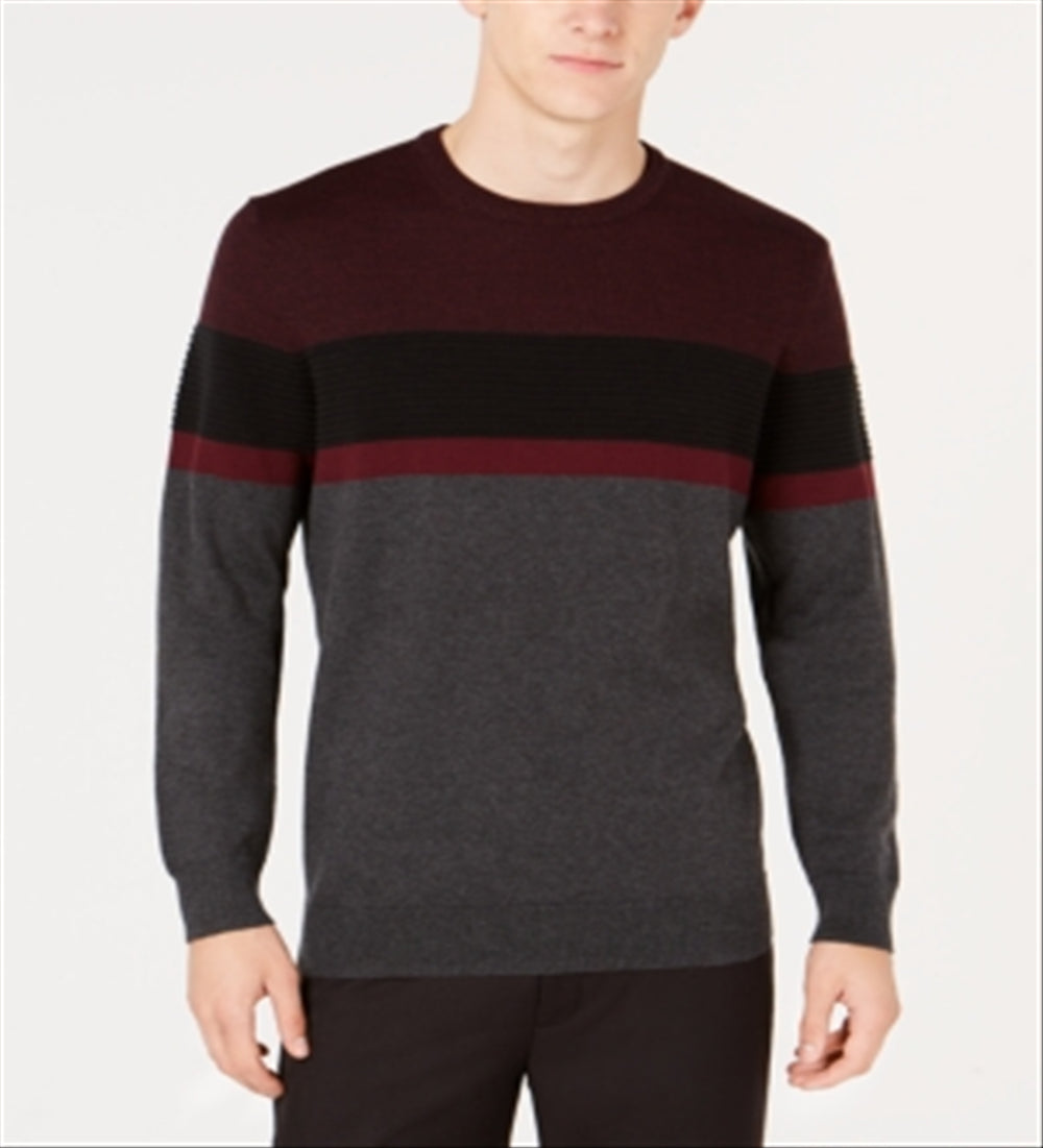 Suéter masculino Alfani de manga comprida e gola redonda, cinza, tamanho pequeno