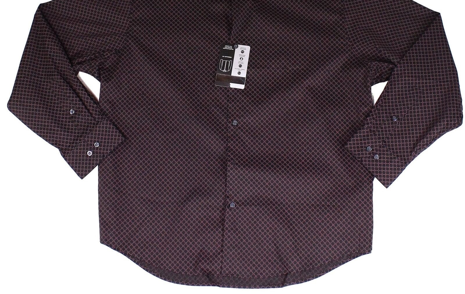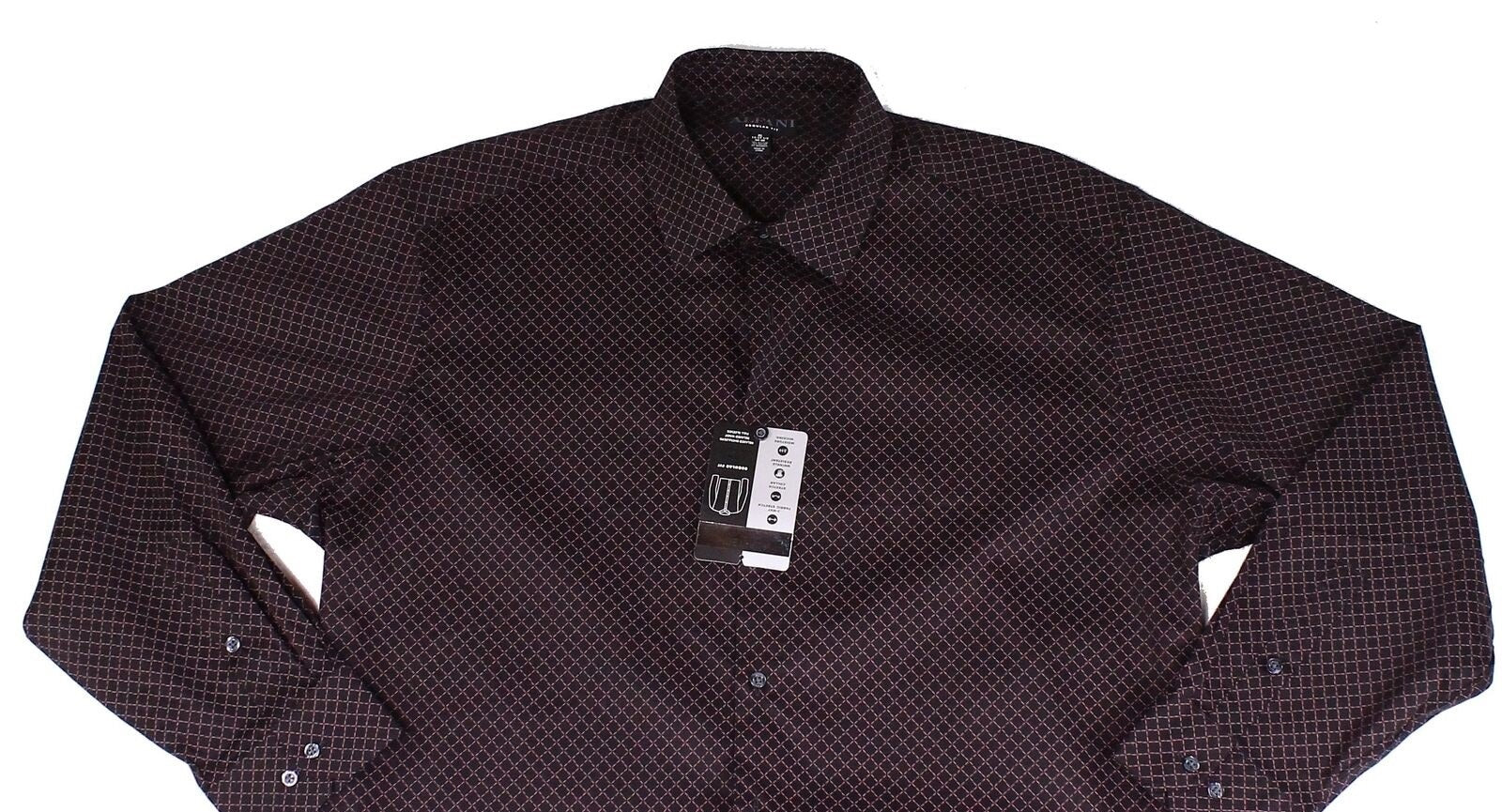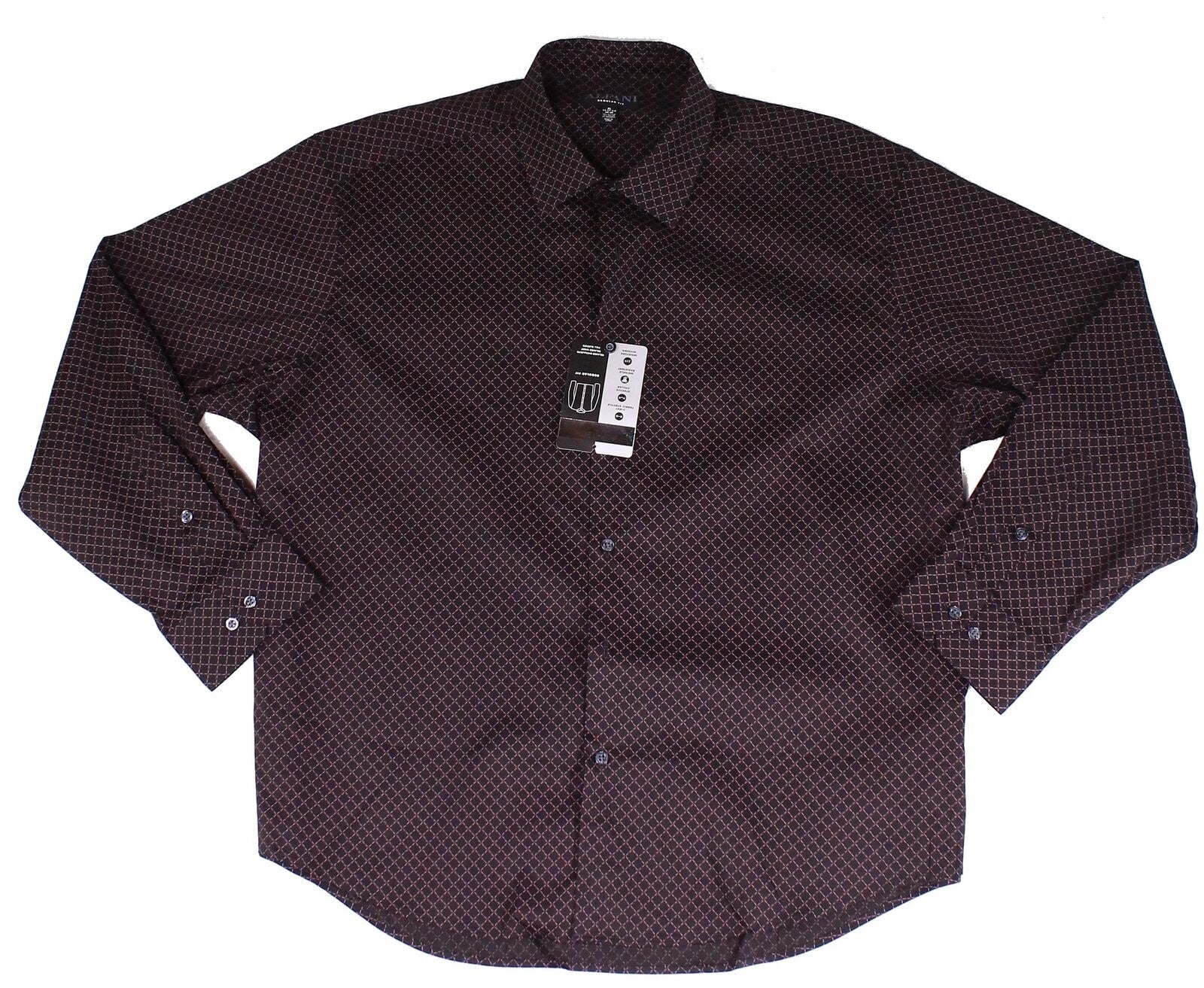 Camisa social masculina Alfani com estampas geométricas e gola aberta, preta, tamanho 17,5 x 36-37