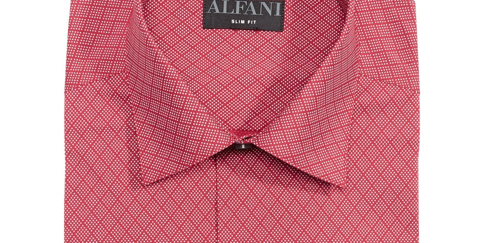 Camisa social masculina Alfani com gola estampada, vermelha, tamanho 15,5 x 32-33