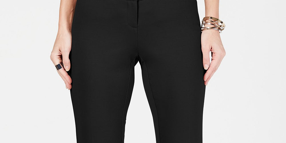 Costura interna aprox.: 30" | Altura frontal: aprox. 8"; Altura traseira: aprox. 14-3/4"; ajuste da calça nos quadris e coxas; perna larga | Projetado para se ajustar e valorizar pessoas de 5'4" ou menos | Zíper com fecho de pressão na frente | Painel de controle da barriga na frente | Bolsos embutidos nas costas