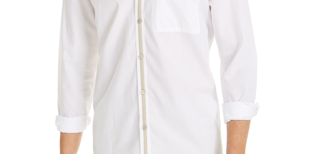 Camisa social masculina Alfani de algodão com riscas e ajuste clássico, branca, tamanho pequeno