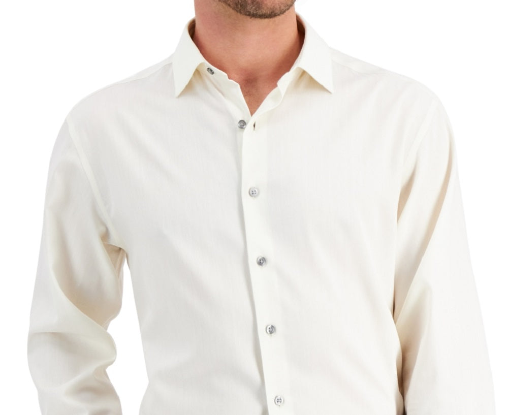 Projetada para combinar perfeitamente com seus dias agitados e nunca perder a compostura, esta camisa social espinha de peixe da Alfani apresenta tecido elástico resistente a rugas que ajuda a regular sua temperatura. Gola aberta Punhos com botões Importado