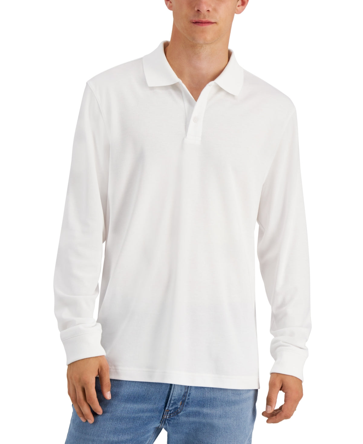 Dê um toque luxuoso ao seu visual descontraído com o algodão Supima supermacio desta camisa polo de manga comprida da Alfani | (Liquidação)