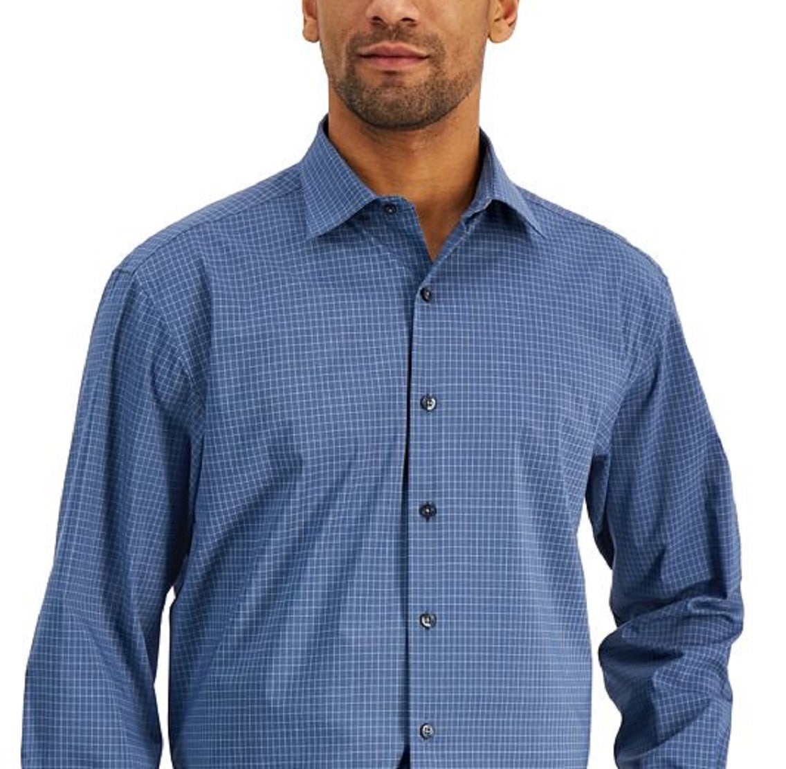 Com um design elegante em mini-xadrez | A camisa social de algodão elástico da Alfani é confeccionada em tecido antirrugas que regula sua temperatura e mantém sua compostura, não importa o que o seu dia lhe reserve. | Caimento regular | Gola alta | Mangas compridas | Padrão mini-xadrez | Antirrugas