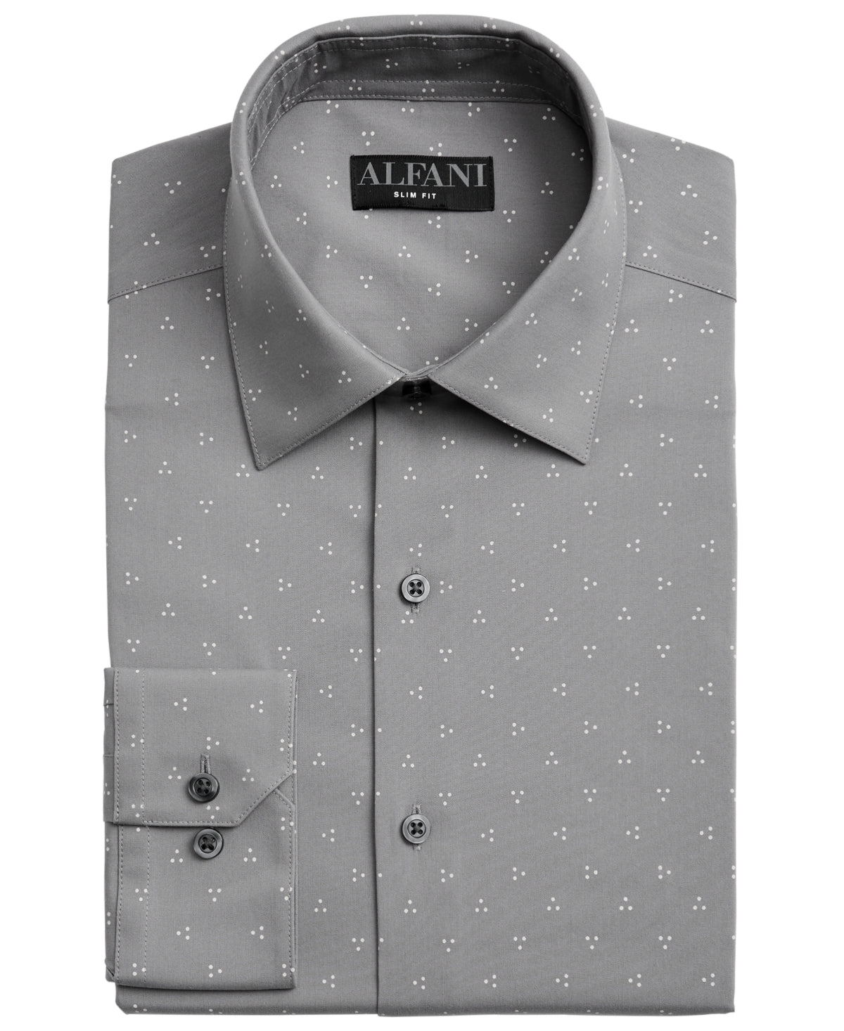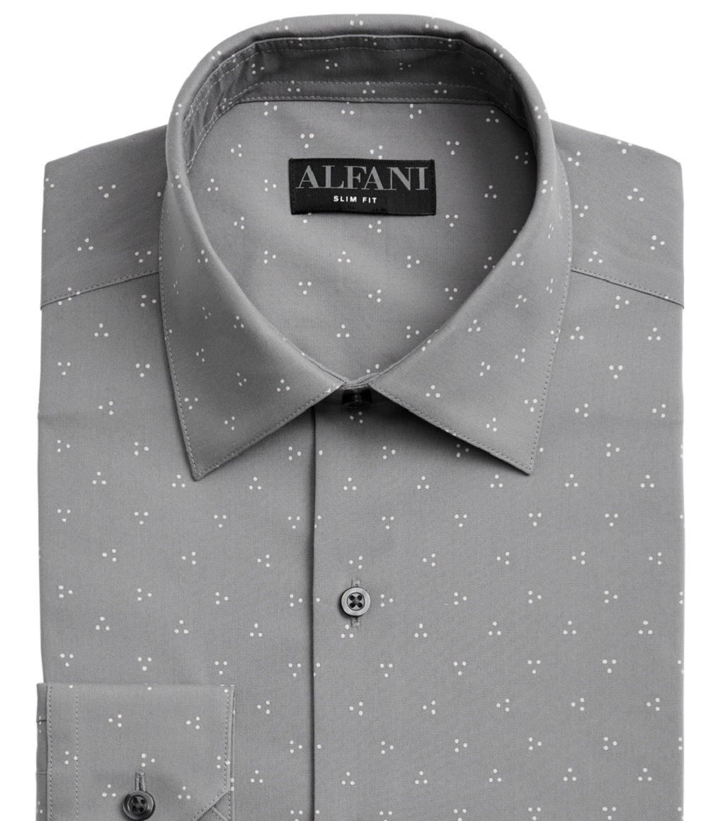 Leve seu visual elegante para o próximo nível com o padrão geométrico pontilhado estampado nesta camisa social elástica irrestrita da Alfani