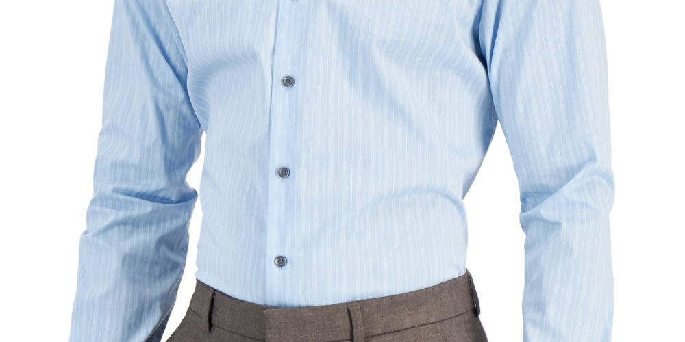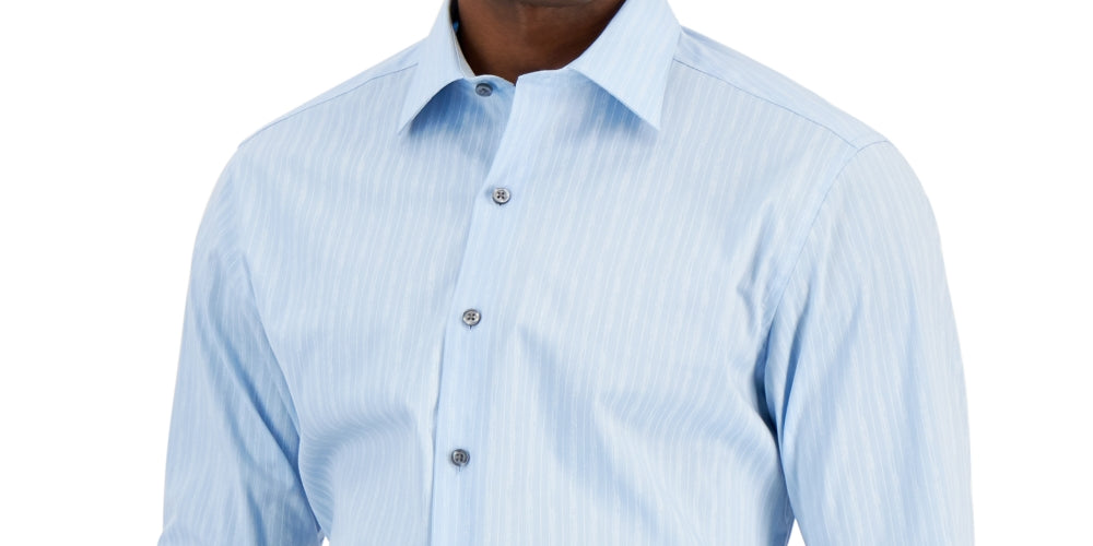 Camisa social masculina Alfani Slim Fit resistente a manchas, azul claro, branco e azul-marinho, tamanho 15-15 1/2