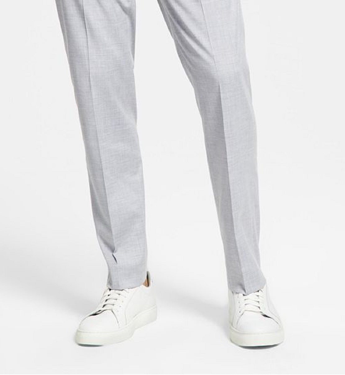 Dê um toque mais moderno aos seus itens essenciais sofisticados com o corte slim refinado destas versáteis calças de terno cinza claro da Alfani