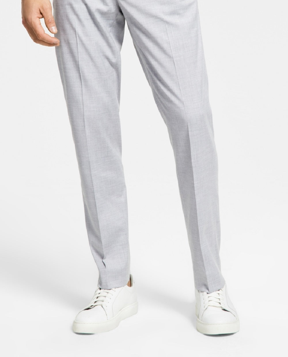 Dê um toque mais moderno aos seus itens essenciais sofisticados com o corte slim refinado destas versáteis calças de terno cinza claro da Alfani