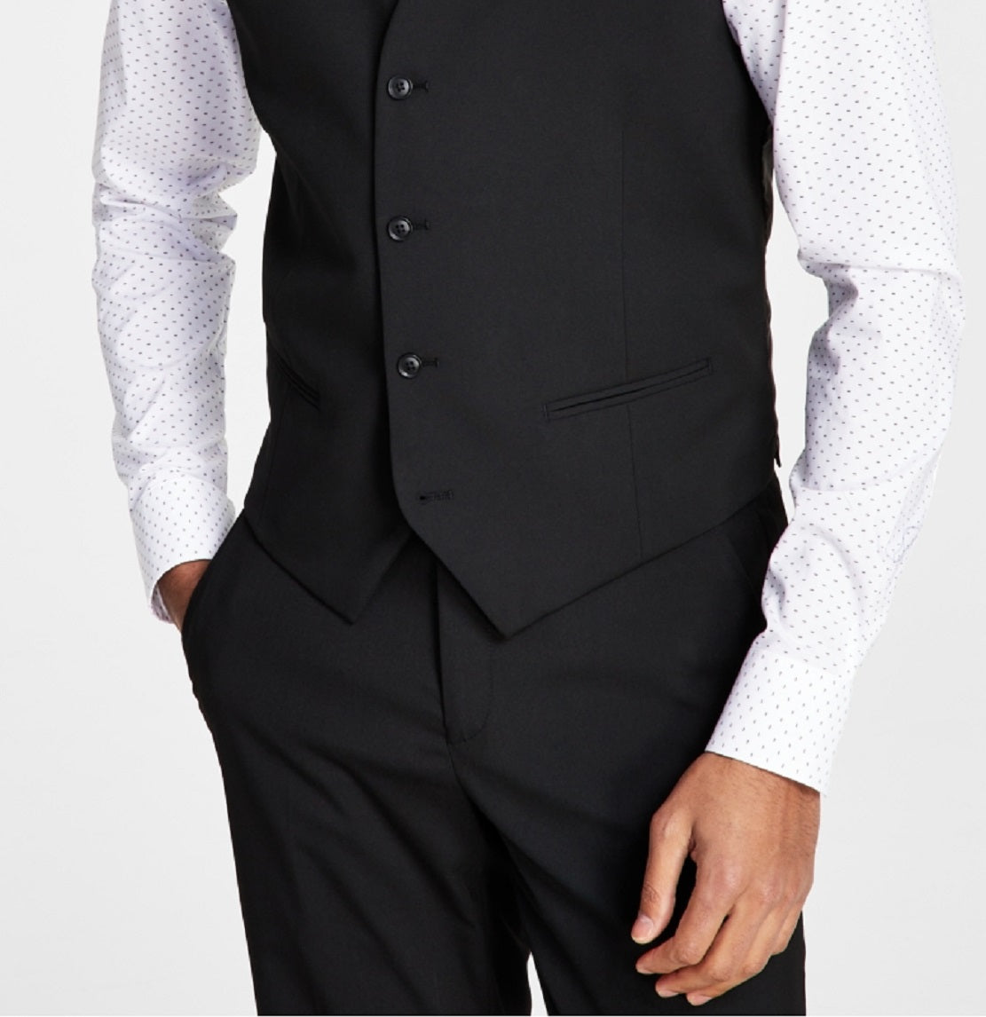 Jaqueta e calça combinando vendidas separadamente | Sem lapela | Fecho de quatro botões | Importado | Dois bolsos frontais duplos para vassoura | Cinto traseiro ajustável com fecho de fivela; totalmente forrado; desempenho elástico