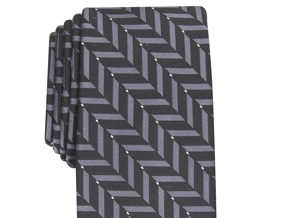 Design fino | 2-3/4" de largura | Padrão geométrico | Poliéster/seda | Lavagem a seco | Importado