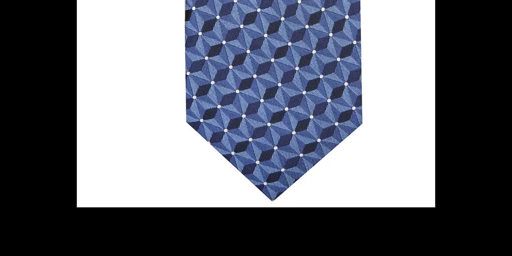 Design fino | 2-3/4" de largura | Padrão geométrico | Seda/poliéster | Lavagem a seco | Importado