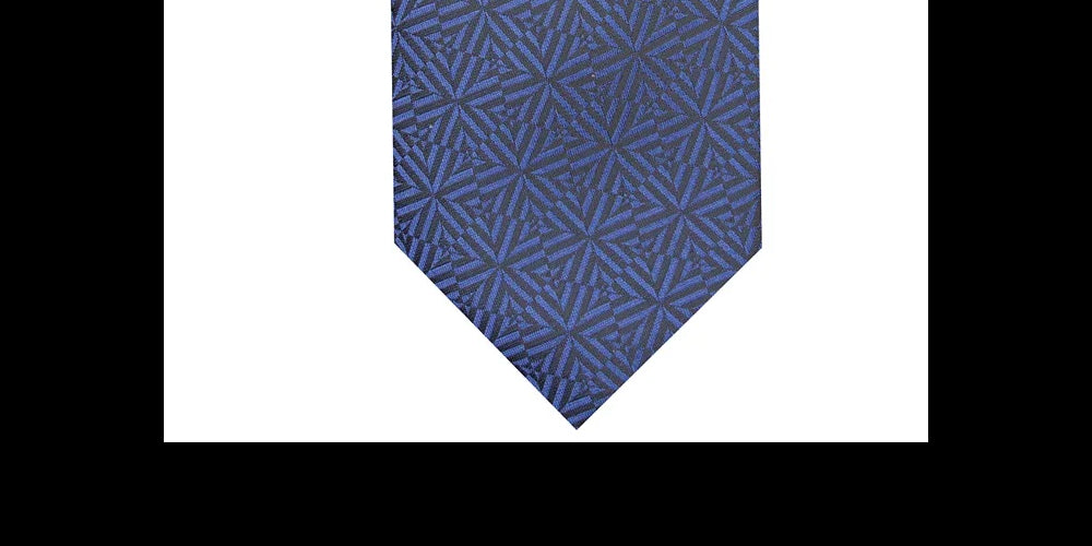 Design fino | 2-3/4" de largura | Padrão geométrico | Poliéster/seda | Lavagem a seco | Importado