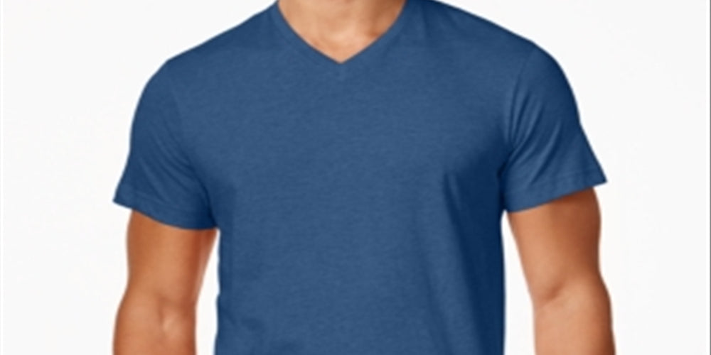 Camiseta Alfani Masculina Slub com Decote em V Azul Tamanho Grande