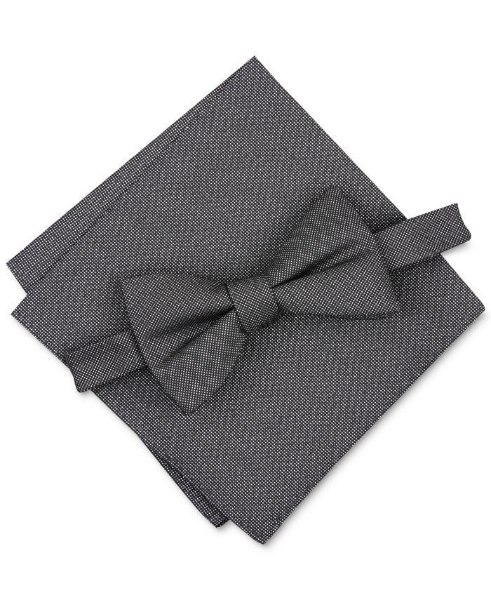 Alfani Masculino Textura Sólida Lenço de Bolso e Gravata Borboleta Cinza Tamanho Regular