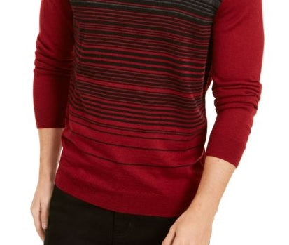 Alfani Masculino Listrado Manga Longa Gola Redonda Ajuste Clássico Mistura de Lã Suéter Vermelho Tamanho XX-G