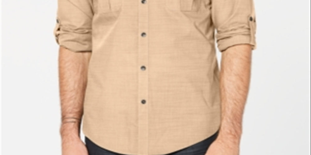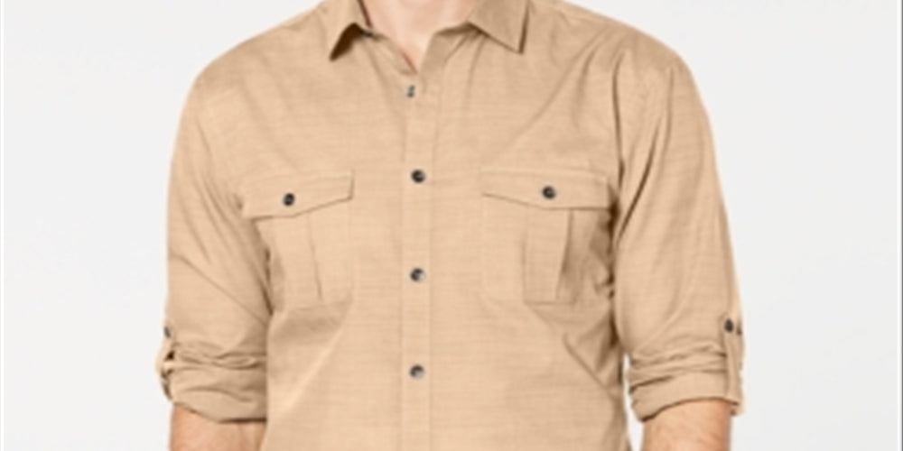 Camisa texturizada Warren Woven masculina Alfani com botões, marrom, tamanho XXX-G