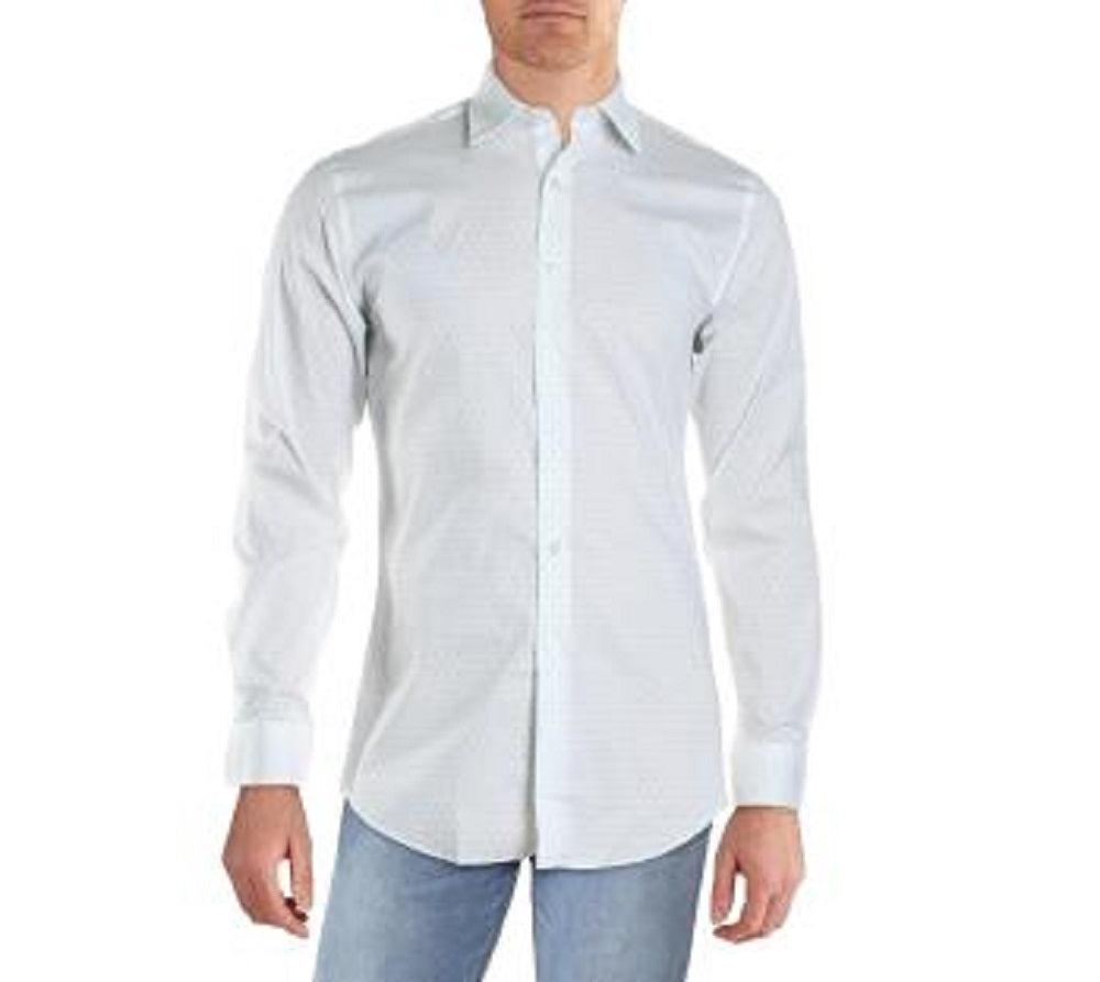 Camisa social masculina ALFANI com gola geométrica branca e corte slim, tamanho grande